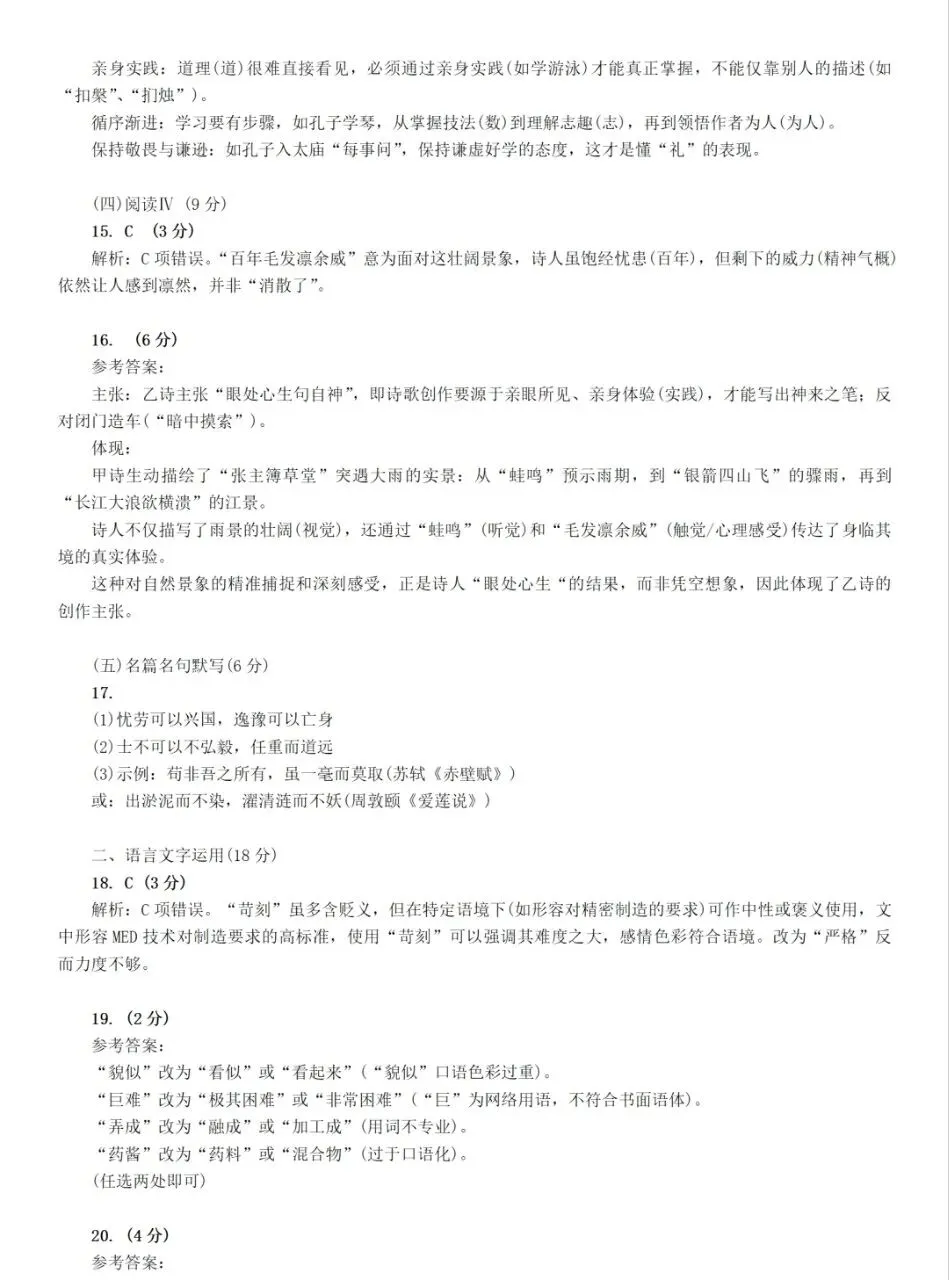 16.元好问在乙诗中提出了诗歌创作的主张,请分析甲诗是如何体现诗人这一主张的。(6分)