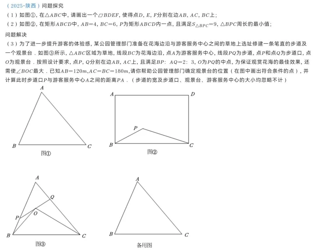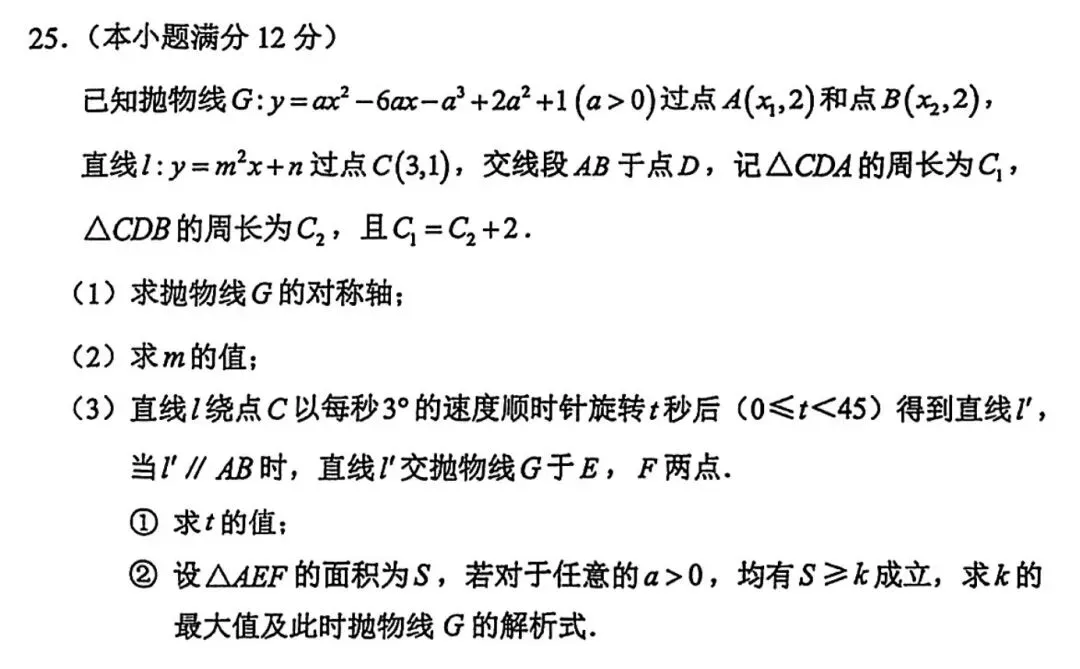 这道题继承了从去年广州中考开始的新型命题模式,也是现在各类月考和模考的网红题型,突出考察学生对实际问题的数学分析能力,运用数学知识评价和解决实际问题的能力。与2025年广州中考的新情景应用题对比一下,选择的情景其实类似,但命题的角度不同,去年中考考察的是二次函数,今年一模考察的则是三角函数与几何求值。这种新情景应用很显然没有固定套路,同一个情景都可以有完全不同的命题角度,实现了真正考察了学生现场分析与应用的能力,学生平时刷题的强化训练几乎没有任何帮助。这道题体现了广州中考对函数、代数考察的一贯方式,不给函数图像,重点考察多字母的运算能力,分类讨论的思想,并在最后一步考察二次函数固定区间的最值问题。要注意,新定义是往年中考和模拟中都没有出现过的,这次出现是一个信号,提醒学生要开始重视加强概念的理解。这道题的命题来源应该是选取了多年广州中考压轴题的元素。这里有2024年中考压轴题中的复杂二次函数形式,也有2022年中考压轴题中求区间内的最值或范围的影子,与2020年广州中考压轴也比较相似,有分类讨论,也有区间范围这道题虽然很多公众号都说好都说妙,但其实这是一道动点是直线轨迹的套路题。只不过相较之前的换了一个场景,稍微做了一些变化,这道题反而没考出什么太大的新意。最近这种套路出现在2025年陕西中考中,条件也是线段满足比例关系,动点的轨迹也是直线。更早一点,这种套路在2021年越秀区中考一模第10题选择题中出现,条件是线段相等,动点的轨迹是直线。看看条件,看看提问,哈哈是不是感觉2026年的就是抄的2021年的?天下题目也是一大抄,你抄我的我抄他。这种直线形轨迹还可以追溯的更早,在2014年武汉的压轴题中第一次出现考察。这次广州一模已经展现出后续中考命题的新趋势,强调真正的分析能力、严谨思维、实际应用。但同时也还在新中考与旧中考的衔接阶段,仍然保留了部分套路题。看完题目瞬间识别出套路,然后就能拿满分的时代也已经过去。拿到一道题目,如何从条件和结论的信息中,准确识别和理解概念,分析构建对整个题目的全面系统的认识,再从已有的解决方案寻找可能的解决途径,才是现在学生学习应该关注的重点。只完成老师的作业,只顾着刷题,只是按部就班亦步亦趋的学生,在未来的广州中考中注定难以拿到高分。