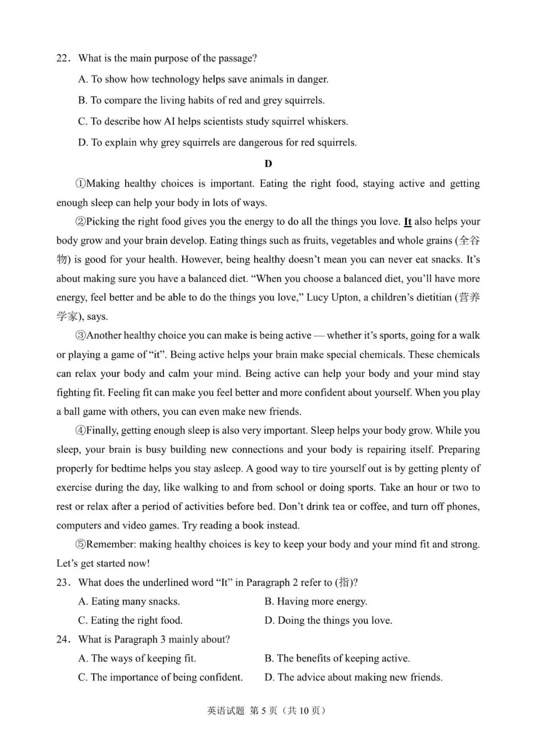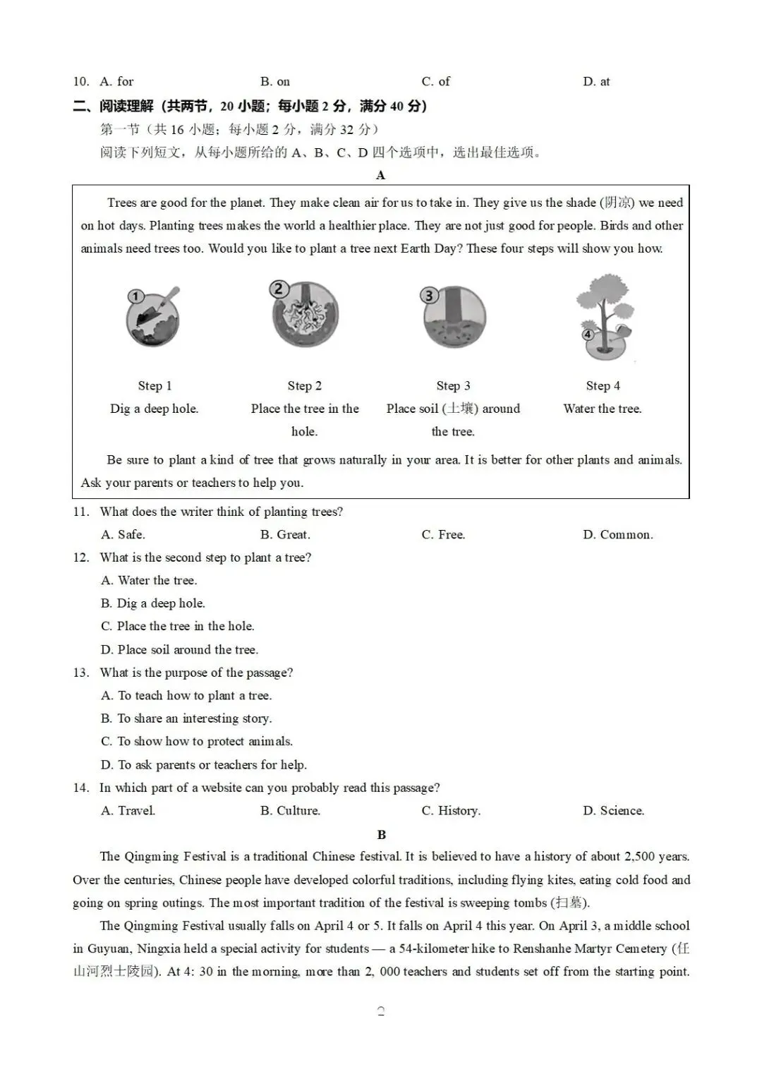 近三年宁夏中考英语真题试卷(2023~2025)(含参考答案)