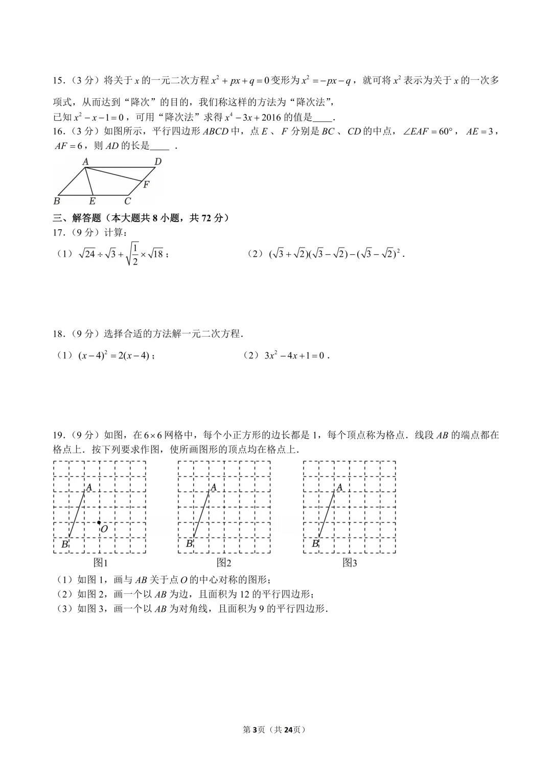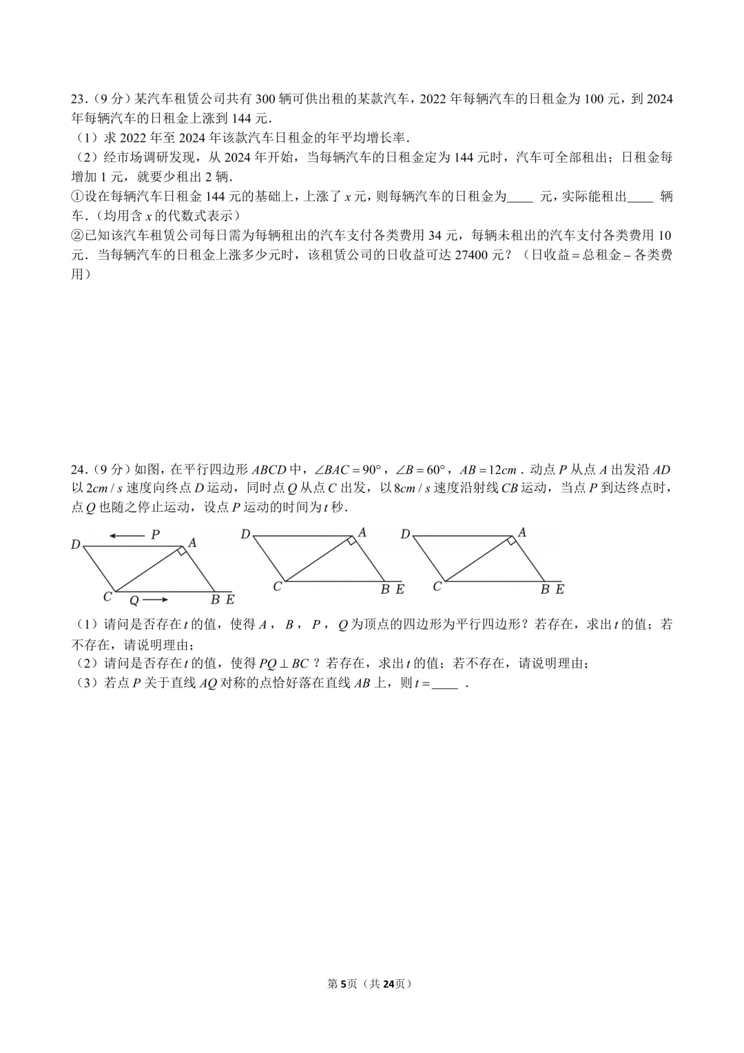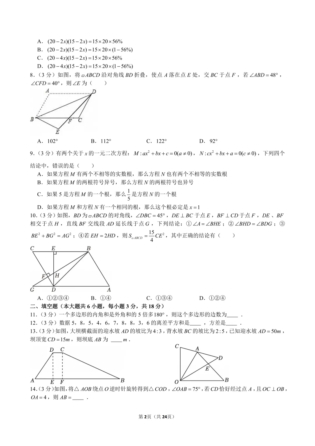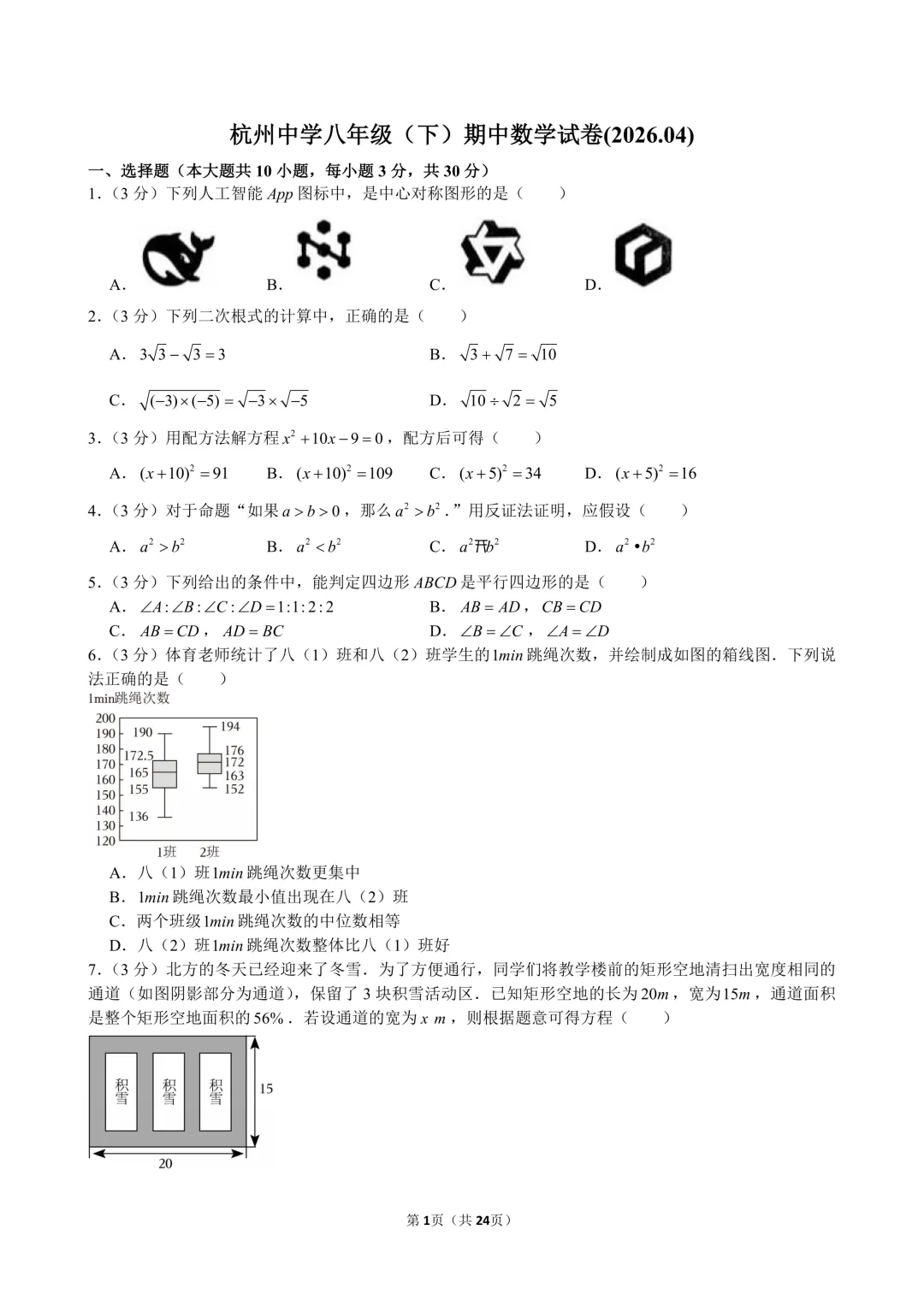 >杭州中学八年级(下)期中数学试卷(2026.04)