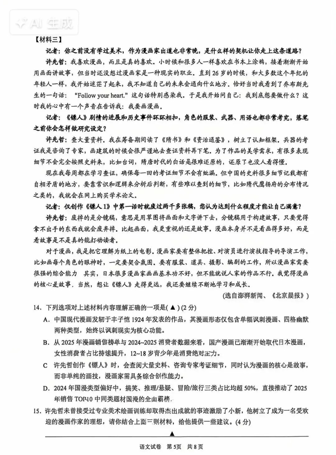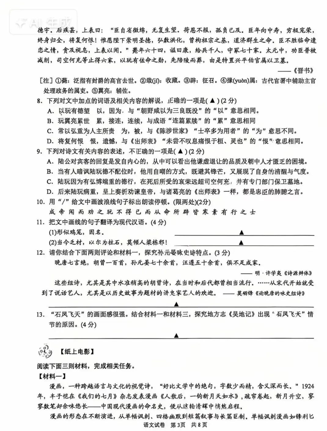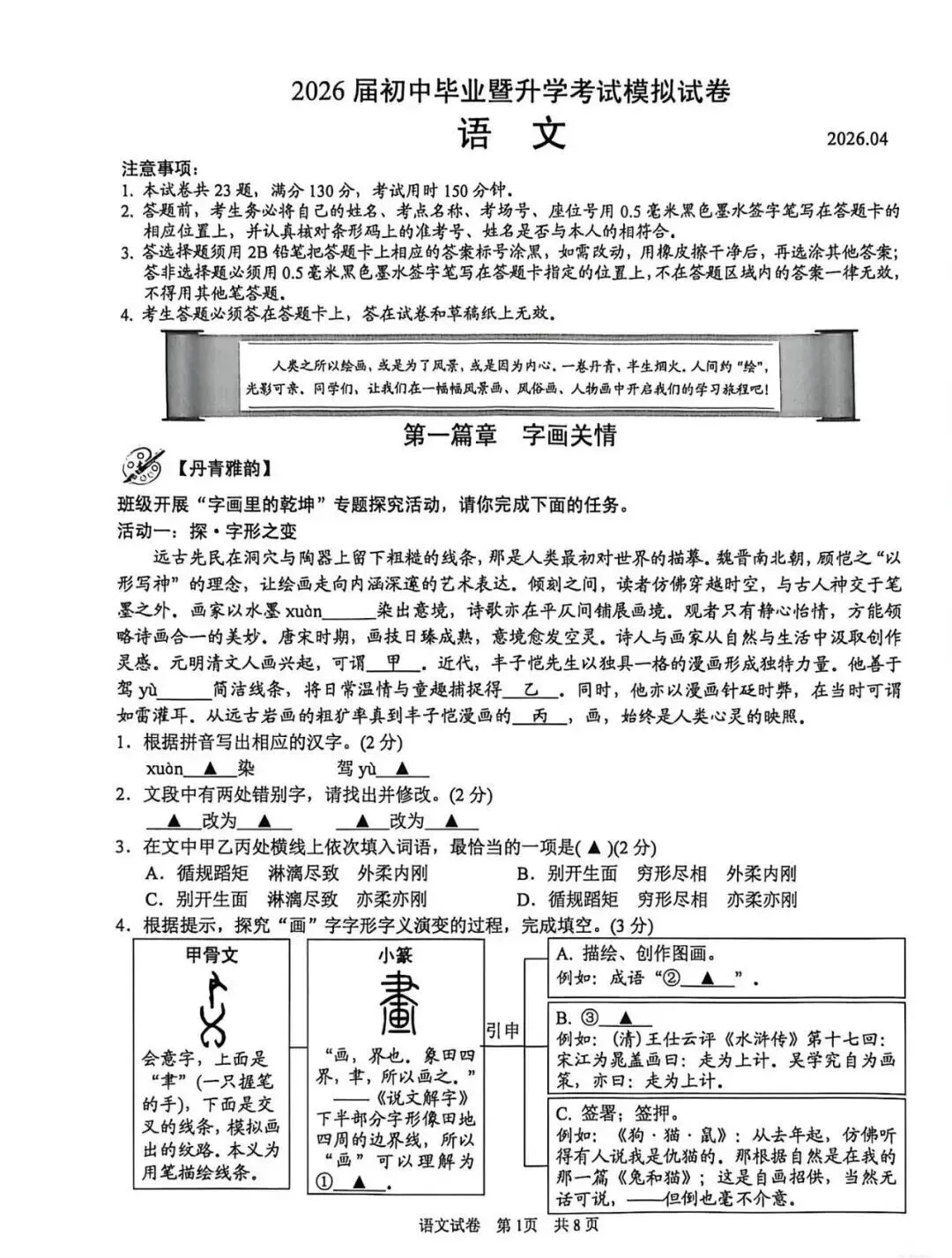 刚考完!张家港期中语文+道法+历史试卷,新鲜出炉!