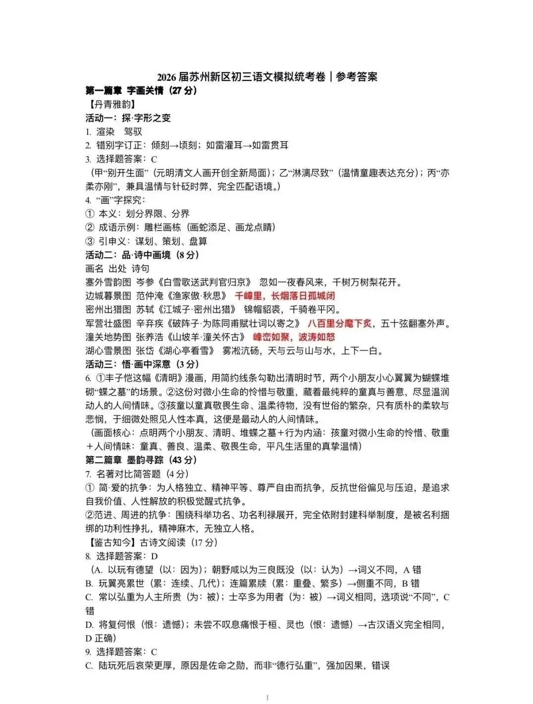 >2026苏州新区中考一模语文试卷+参考答案(2026.4.27)