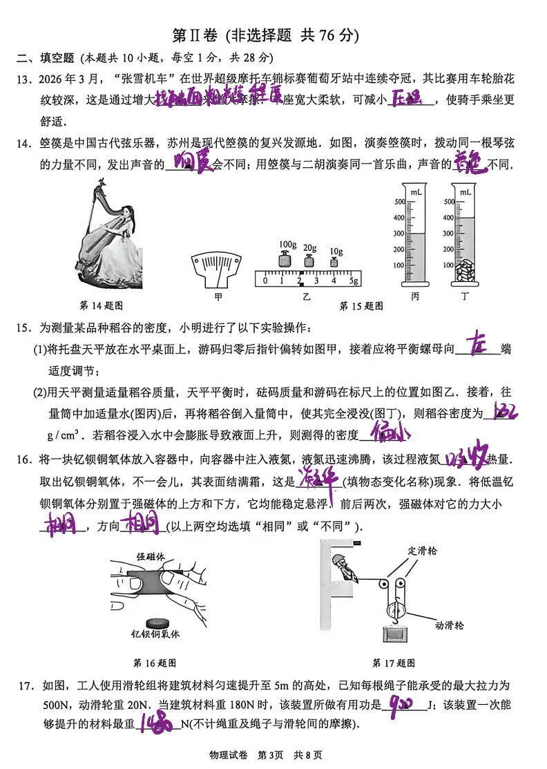 >2026苏州园区中考一模物理试卷+参考答案(2026.4.27)