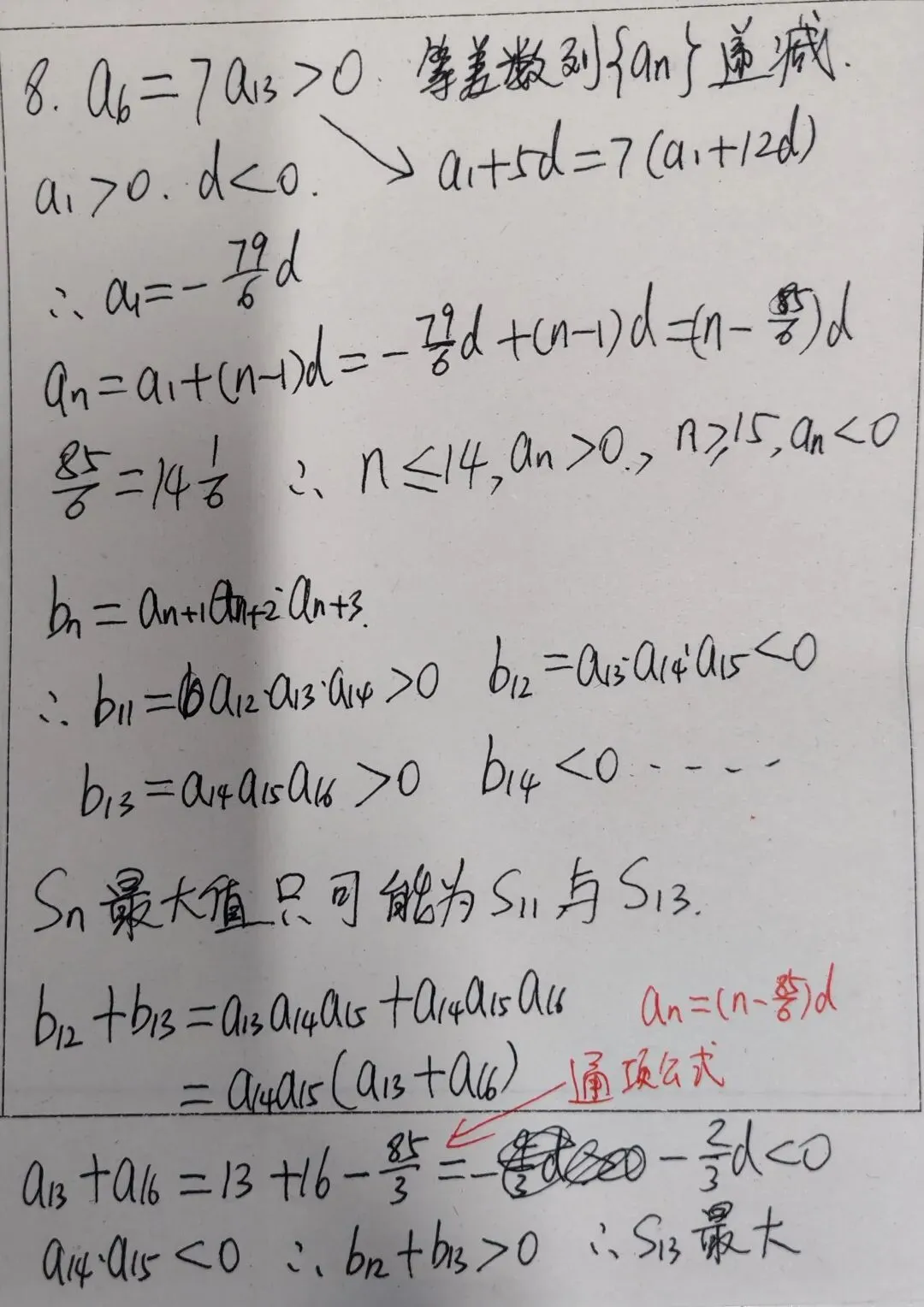 今天下午唐山二模数学考试,考完后有几位粉丝留言,让我帮忙解析一下试卷压轴题,恰巧今天晚上为学生辅导,没腾出时间来做题,勉强做了一下选填压轴题,分享一下,仅供参考!第8题,这个题目出的水平很高,构思非常巧妙,本质上还是考察等差数列前n项和的最大值问题,只不过多套了一件外衣bn而已,但就这一件外衣,就够学生琢磨半天了。