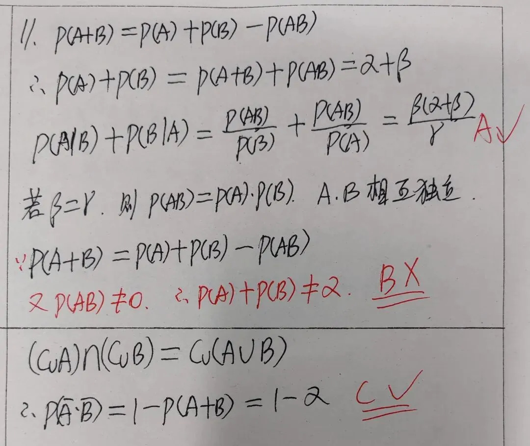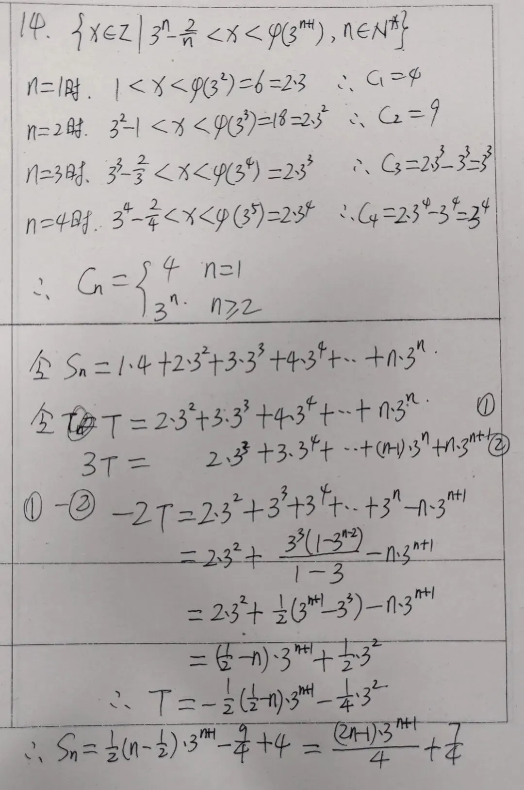 上图红色笔迹的地方丢了d,发布作品前发现的,写的比较匆忙,抱歉。第11题,考察概率性质,四个选项设计的也很巧妙,详细解答见下图,选项D暂时没想出来,今天太晚了,先写到这里,明天一定给大家一个完美解析。第14题,题目构思非常有深度,有几个难关需要过,第一,要弄懂什么是欧拉函数,从而能求出欧拉函数的值;第二,能够求出集合中元素个数,并且要找出规律;第三,能够发掘出数列Cn的通项公式,从而为数列求和做准备;第四,数列求和又不能整个套用错位相减法,这个陷阱又够学生喝一壶的,学生真难啊自认为解析过程写的很详细,但是文字写的再多,也不易看出我的思考过程,等有时间录制视频讲解一下,欢迎关注!今天太晚了,只做了三个压轴题,其它题目没有看,唐山卷每年质量都很高,今年试卷从三个选填压轴题来看,出的非常漂亮,别的题目没看不能评论,明天再说吧