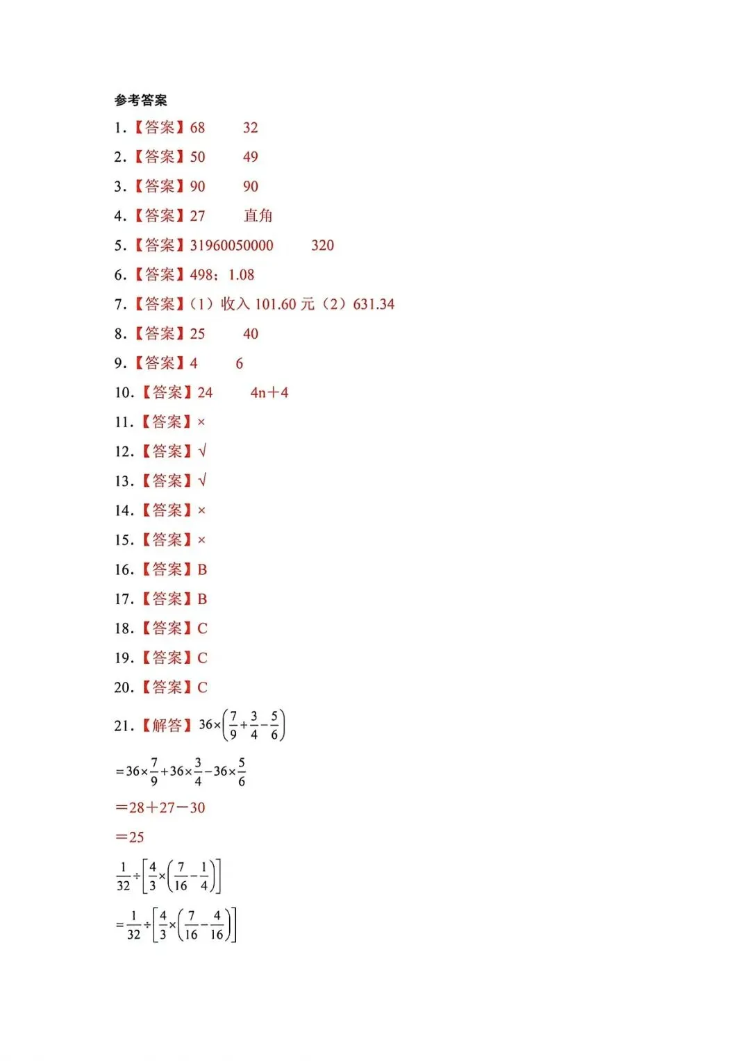 上海市2026届五年级毕业数学学情试卷及答案(2026.4)