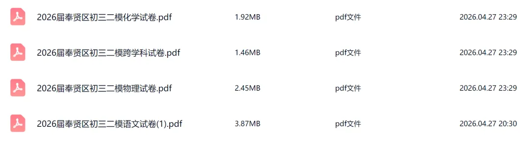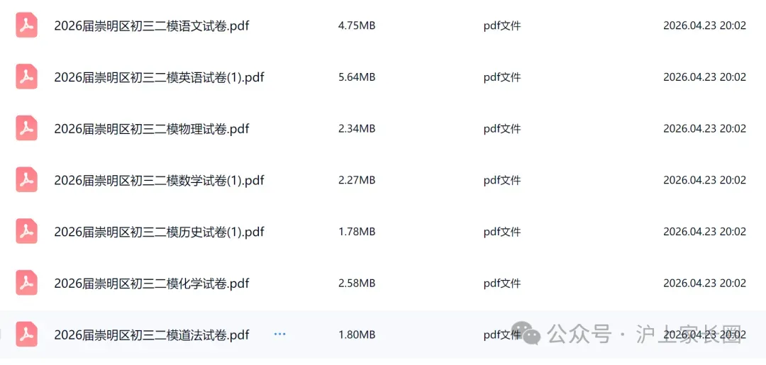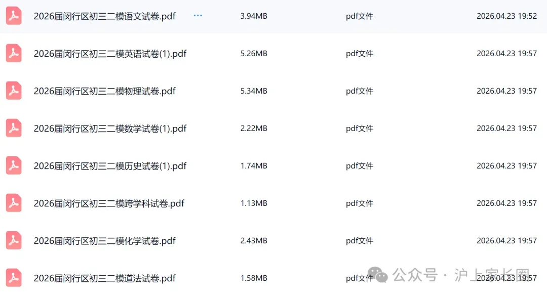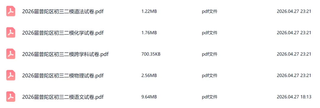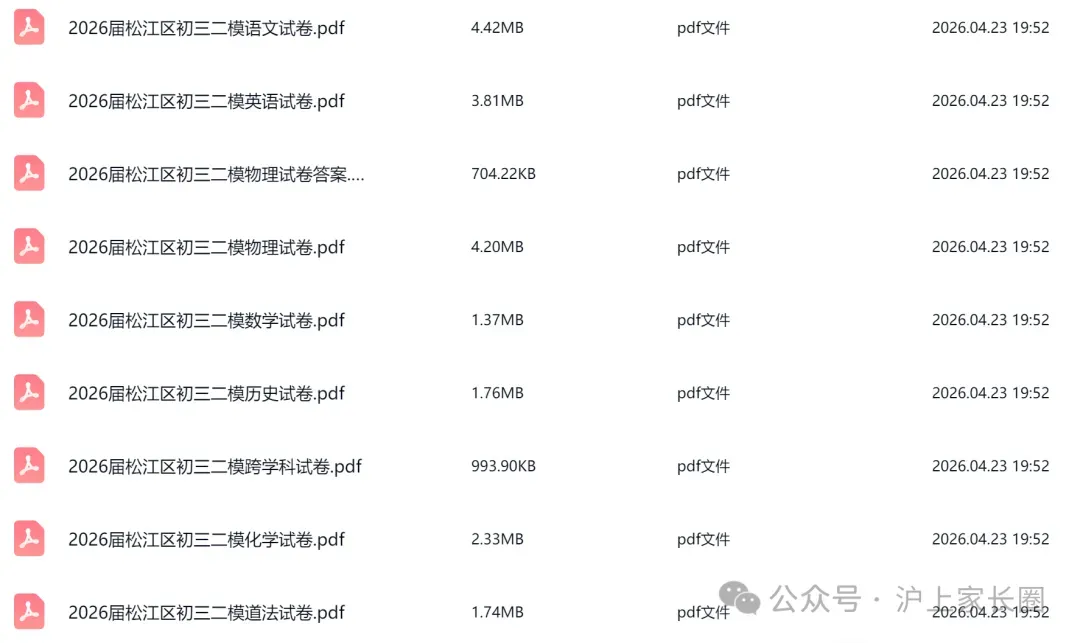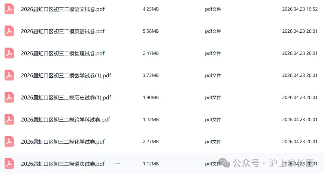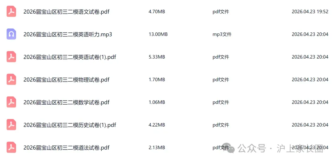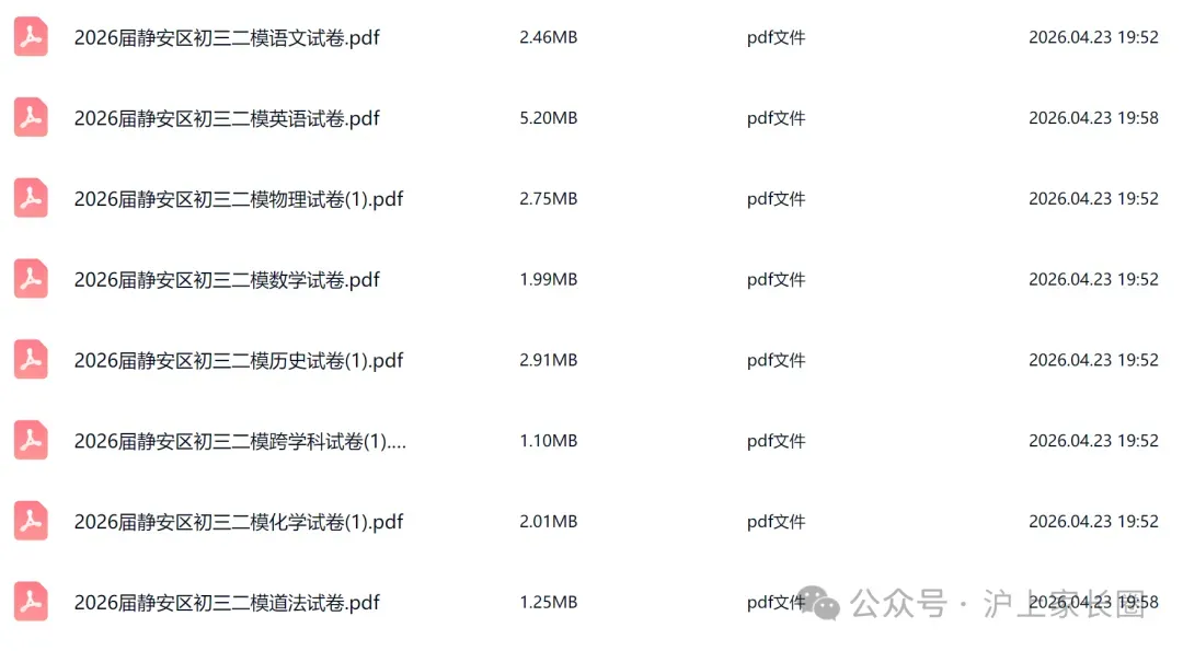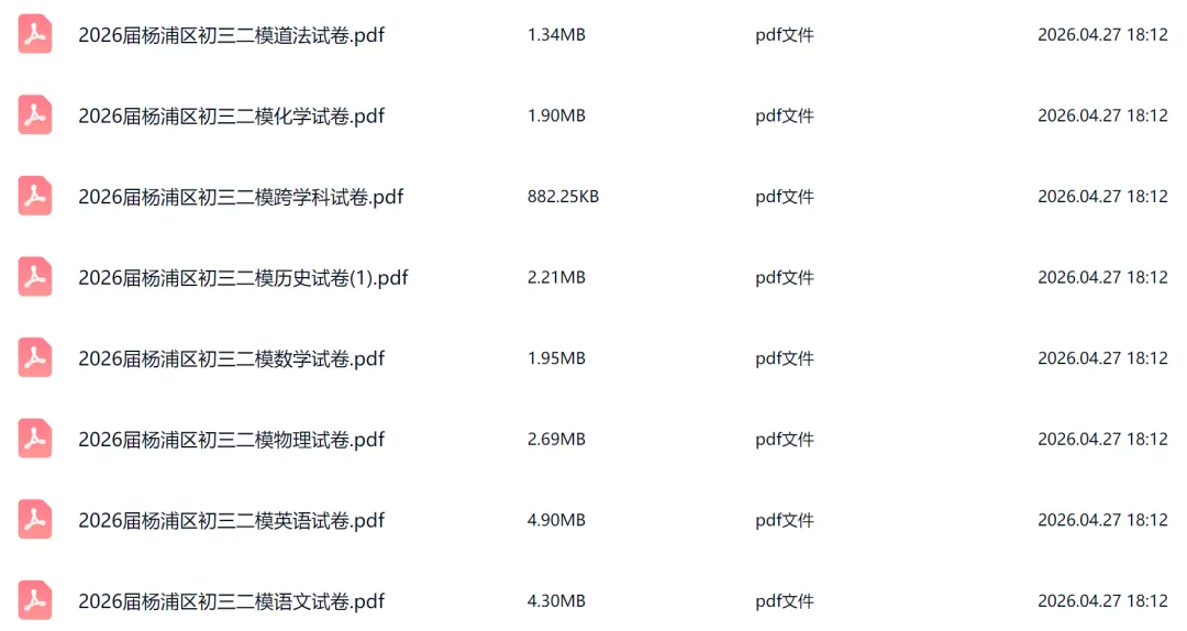 上海中考+初中各年级学习资料+真题试卷大全,点击免费直接下载