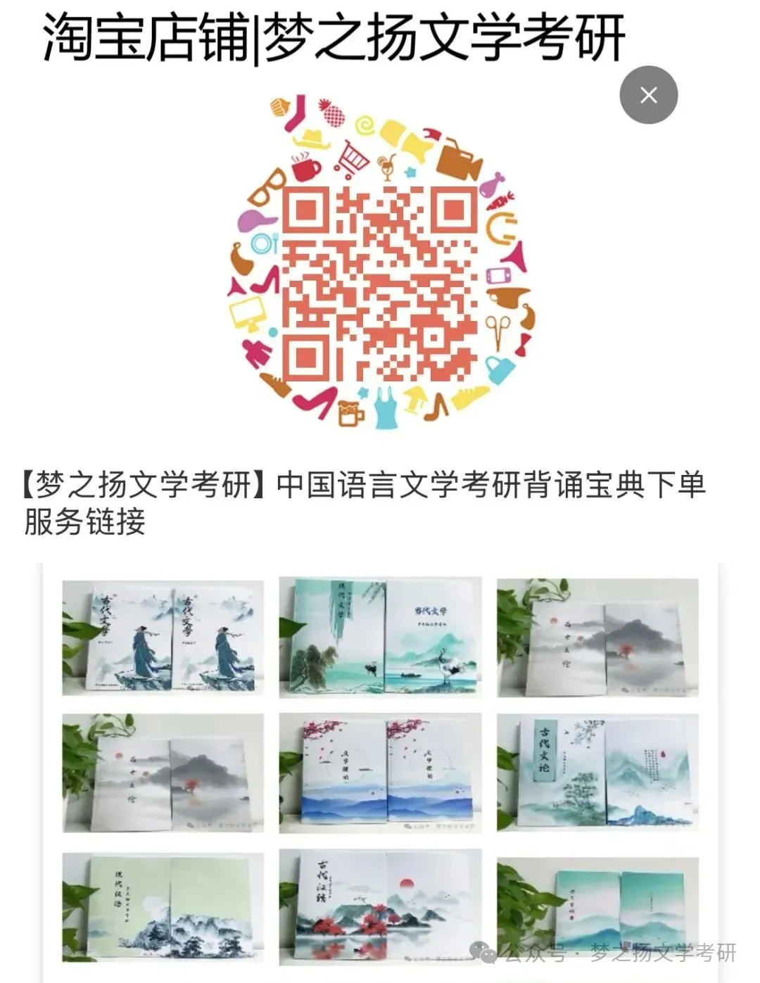 支持任意组合需要的笔记,加入购物车后,一起提交拍下,领券享受满减优惠。上方临时二维码失效后,手动检索淘宝店铺:梦之扬文学考研~即可