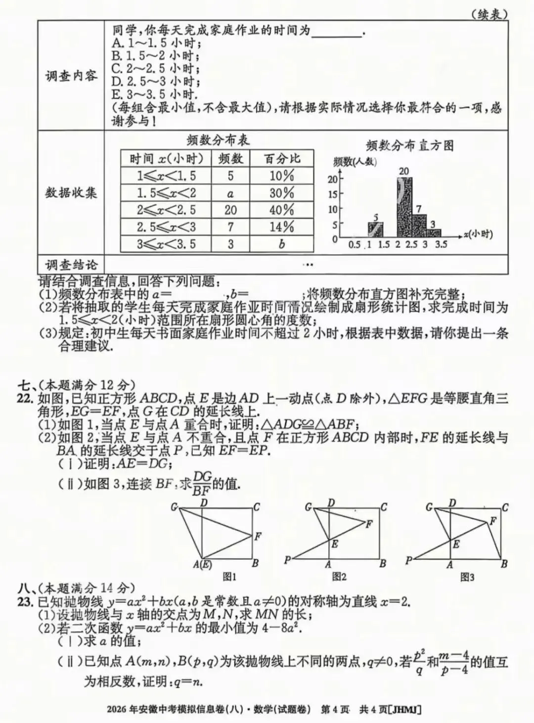 2026年安徽中考模拟信息卷(八)数学试卷及答案