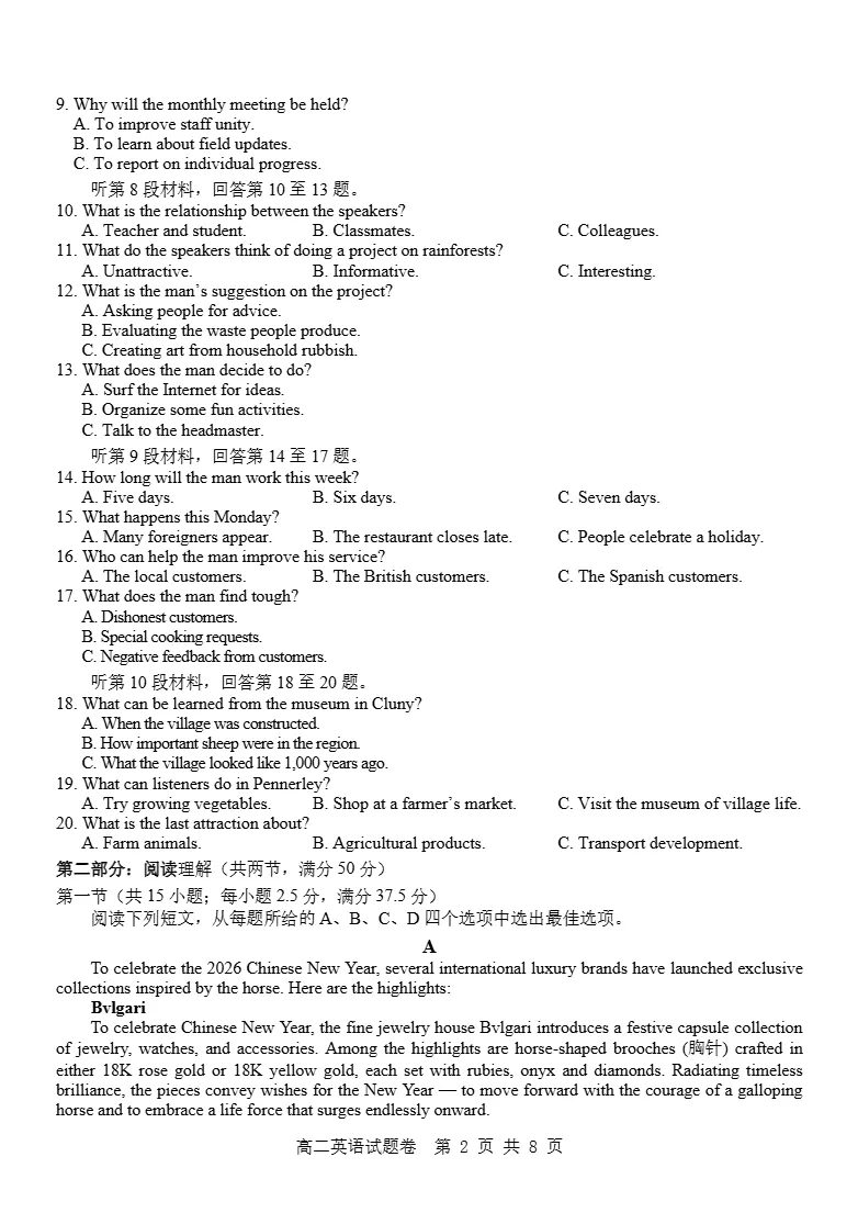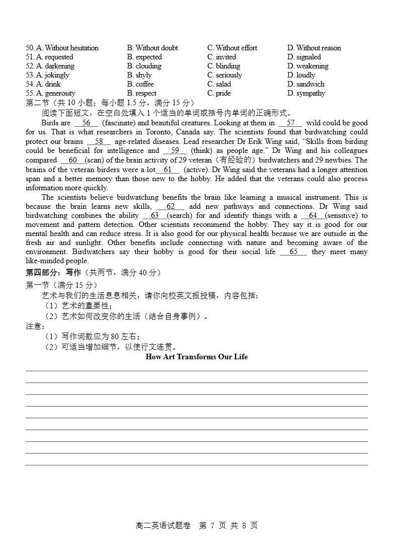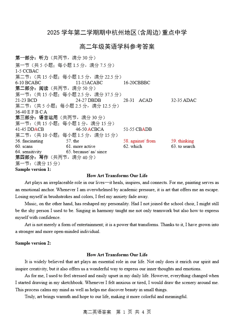 10-12分覆盖主要要点:①提到艺术的重要性②有自身事例,但事例稍显笼统或不够具体③能体现“改变”,但略显简单语言较流畅,有少量语法或拼写错误,不影响理解,内容完整,表达清楚