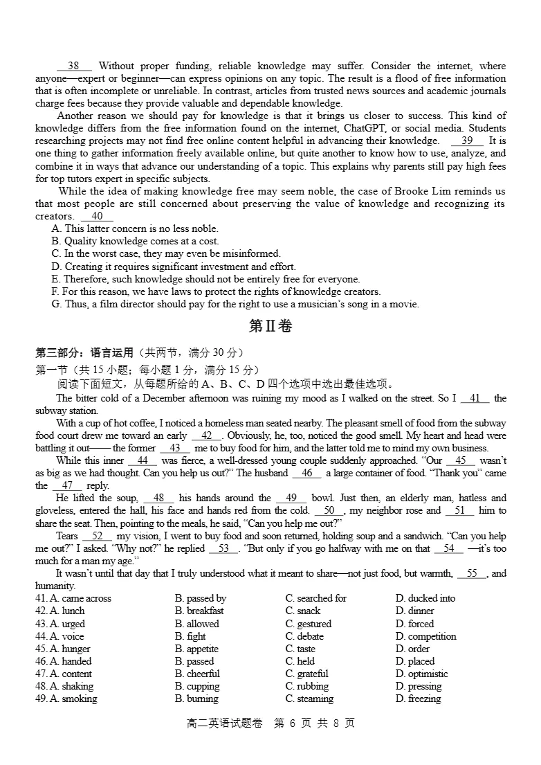 6-10分情节不完整或逻辑混乱;未有效承接原文;语言错误较多,影响理解;词汇贫乏;人称/时态混乱;