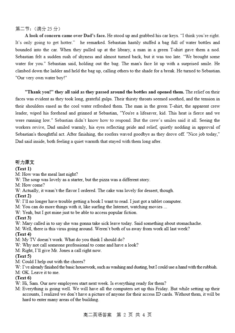 21-23分情节合理、完整、连贯;自然承接原文结尾句;有情感变化或成长点(如Sebastian从犹豫到勇敢);语言准确、流畅、丰富;句式有变化(对话、描写、心理活动结合);用词生动