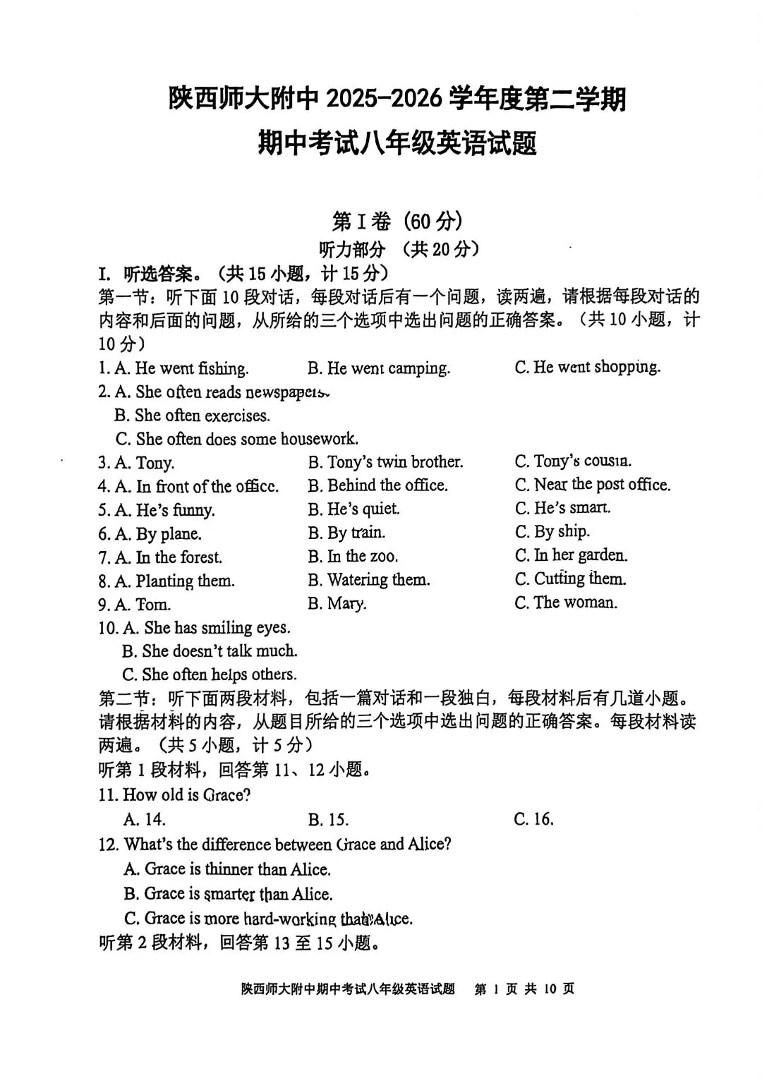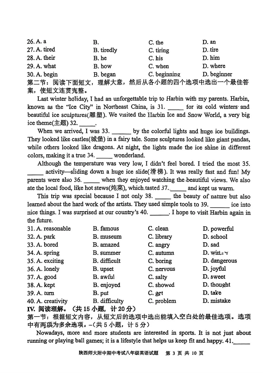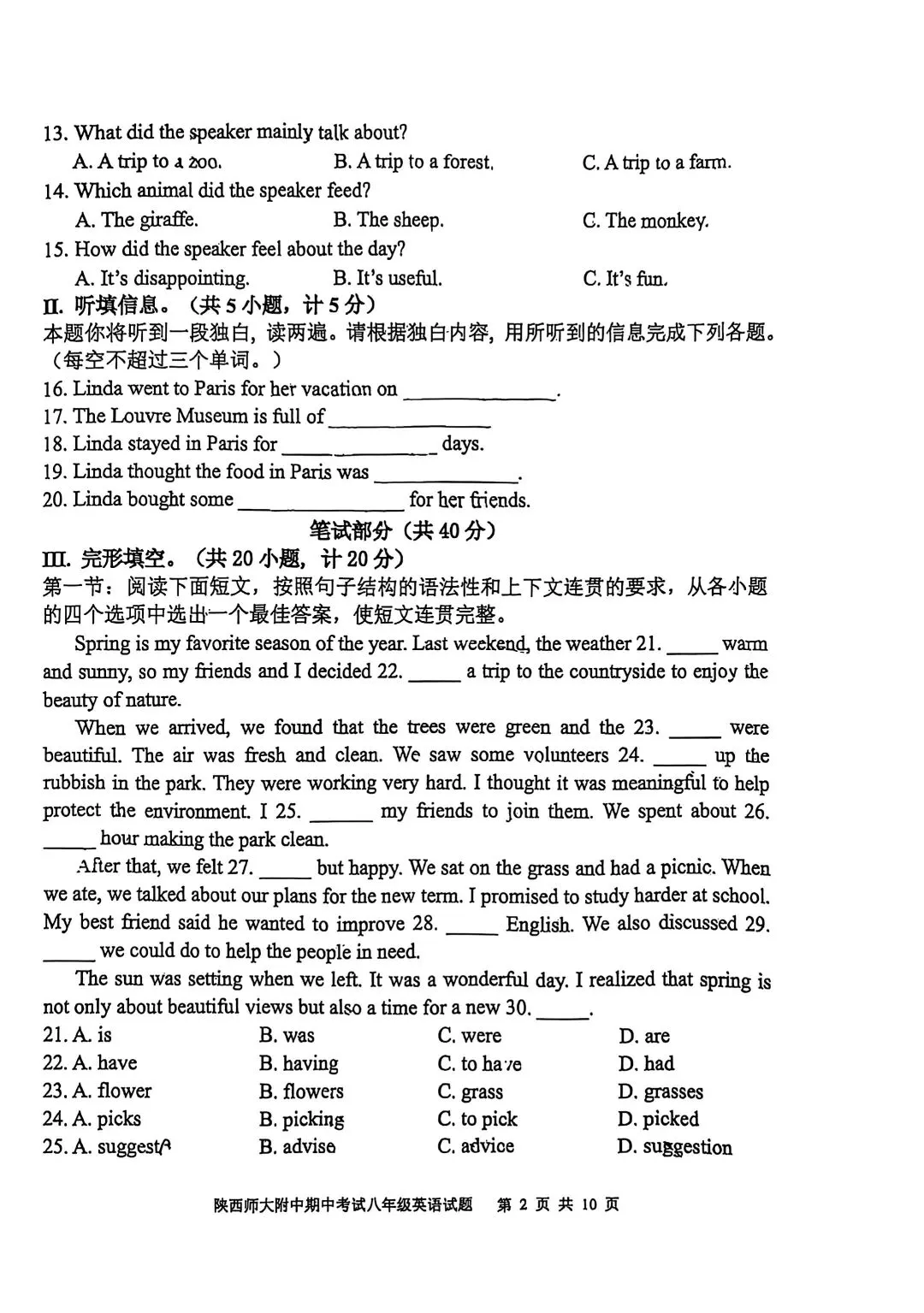 25-26年师大附中期中考试八年级英语试卷