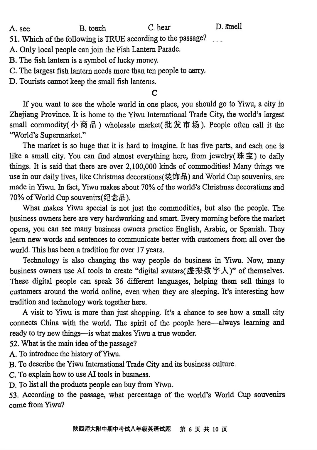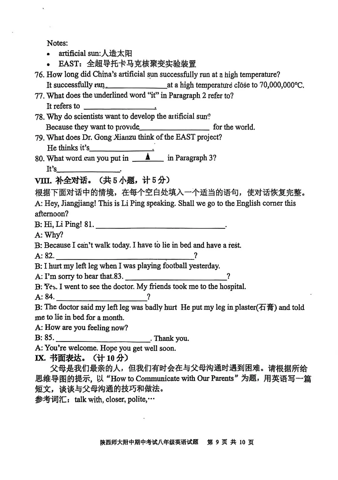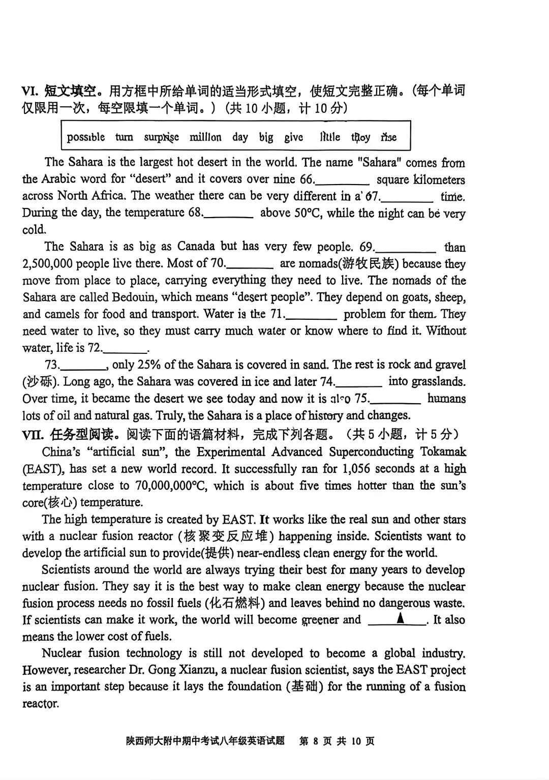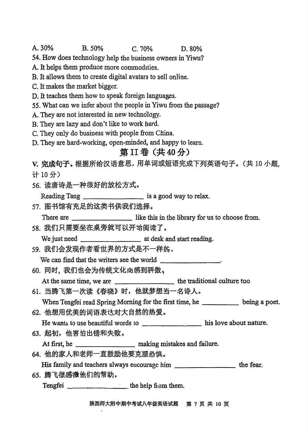 25-26年师大附中期中考试八年级英语试卷