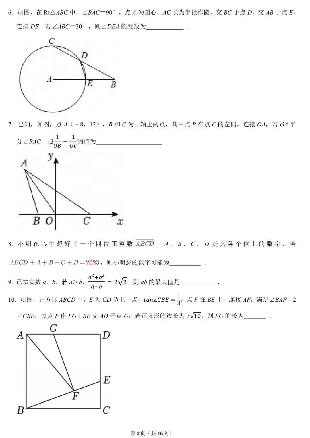 2026年安徽中考模拟信息卷(八)数学试卷及答案