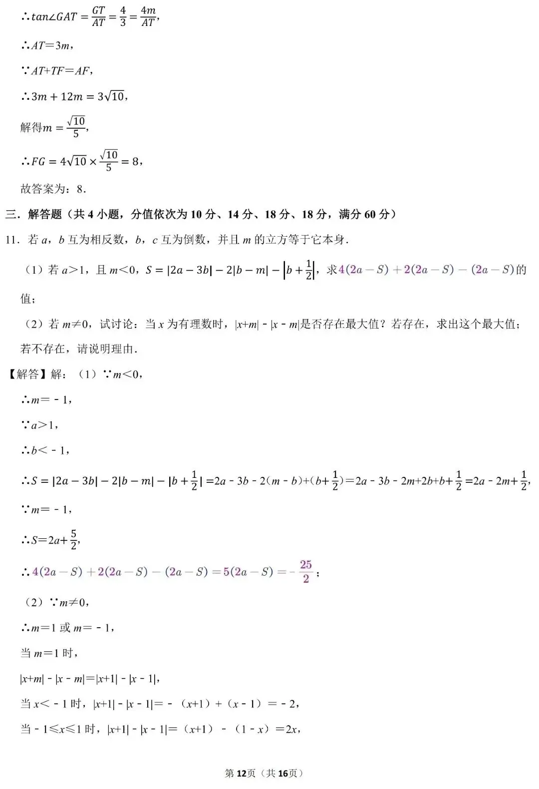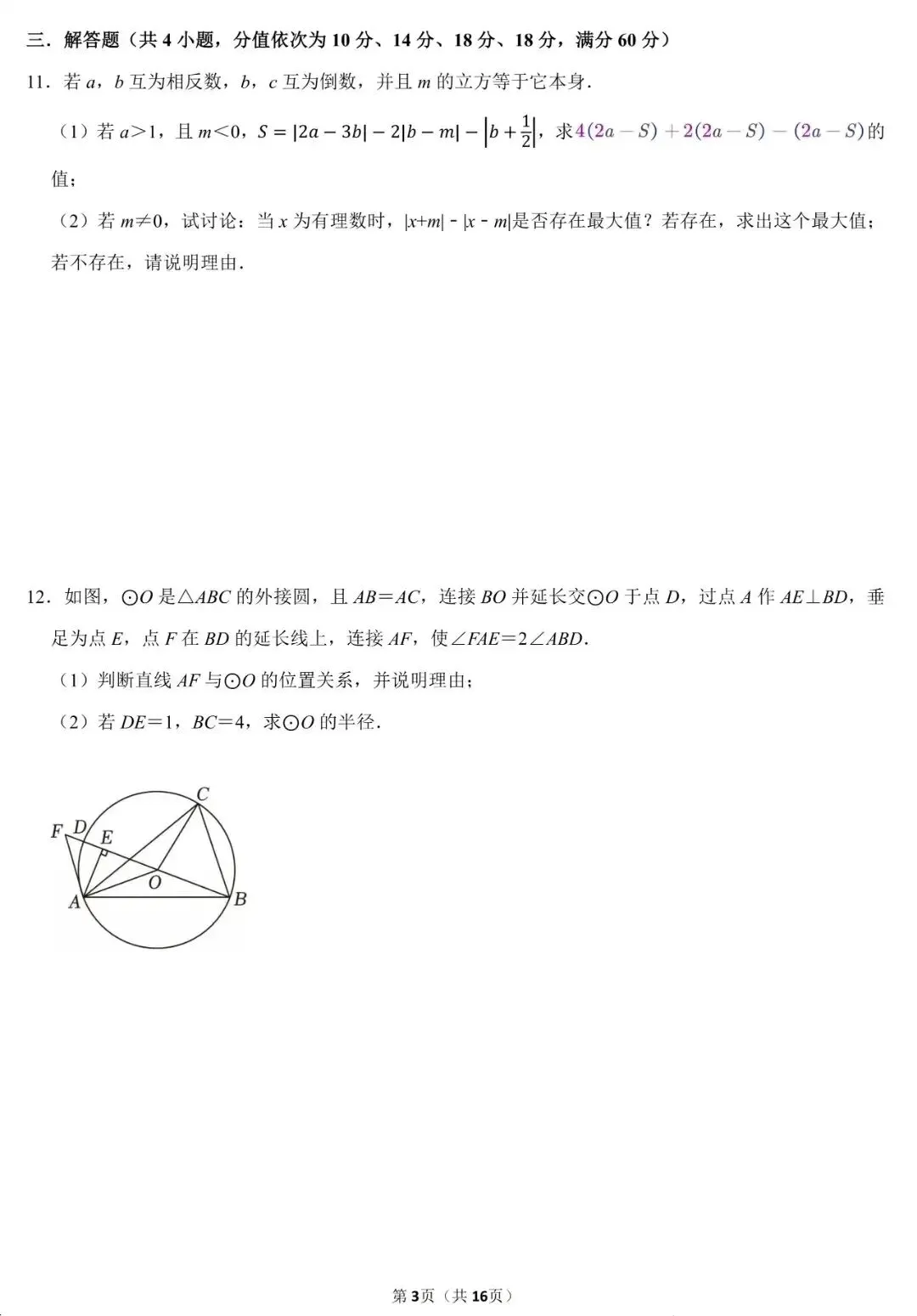 四川广安中考数学试卷(2024)(原卷版+解析版)(无水印PDF打印版)(合集)