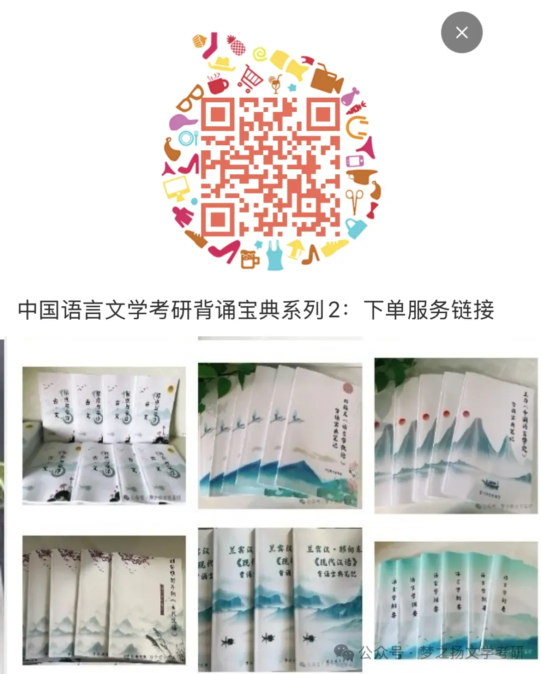 支持任意组合需要的笔记,加入购物车后,一起提交拍下,领券享受满减优惠。上方临时二维码失效后,手动检索淘宝店铺:梦之扬文学考研~即可
