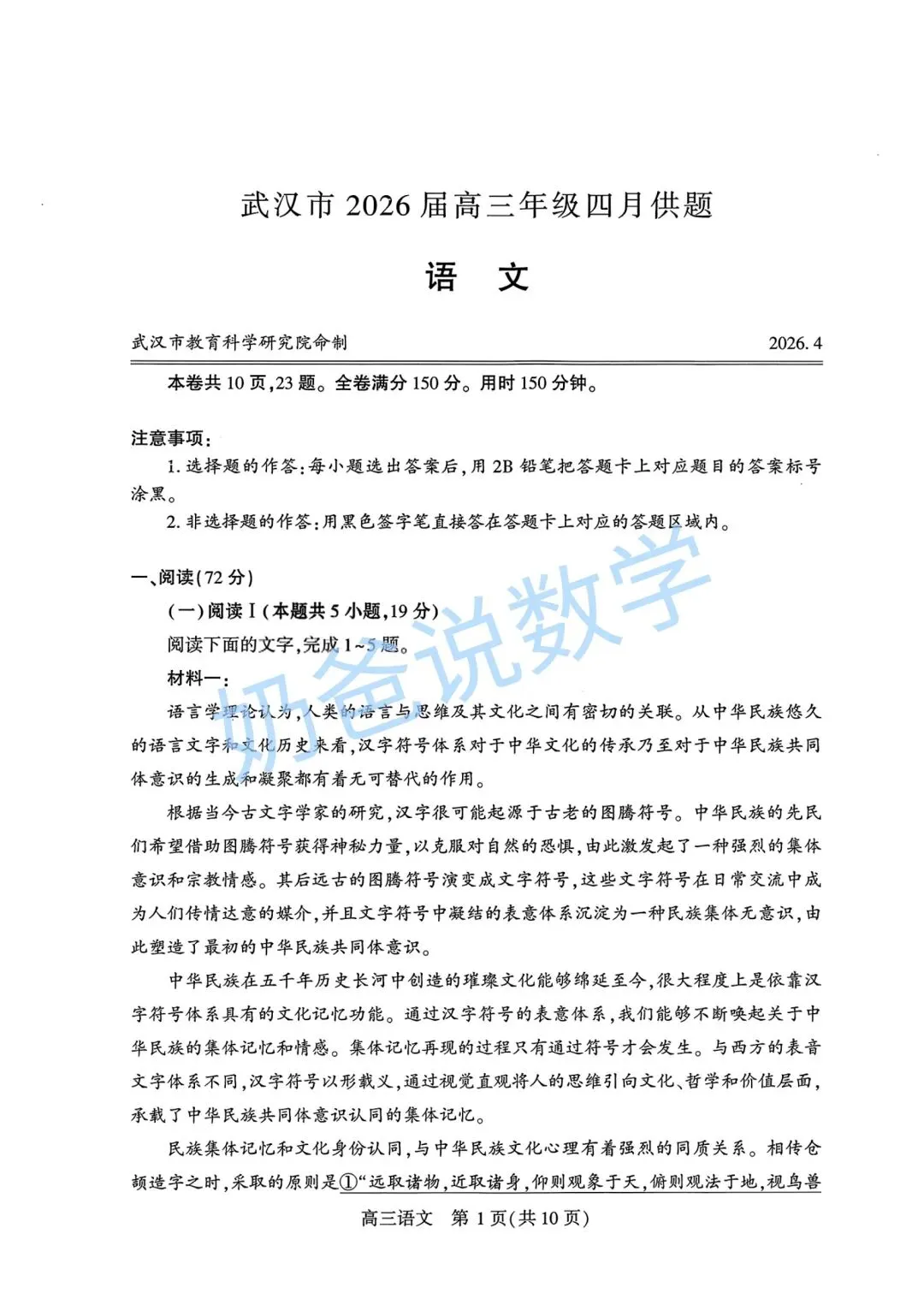 >高中|2026届武汉市高三四调语文试卷(附答案)