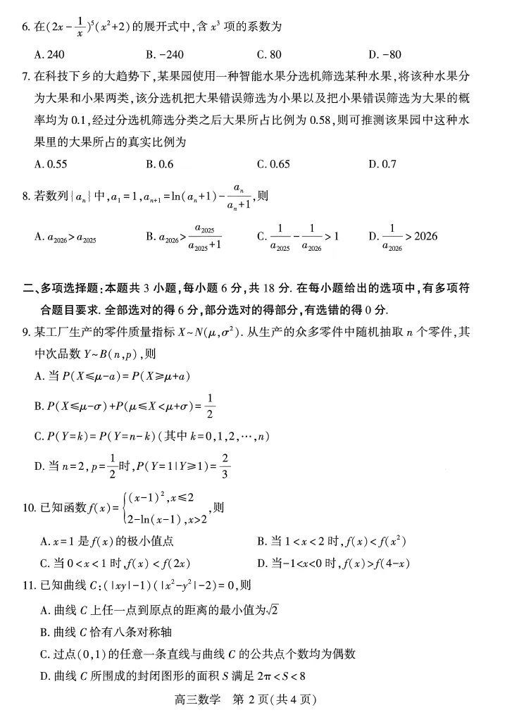 二、多选题(本题共3小题,每小题6分,共18分.在每小题给出的四个选项中,有多项是符合题目要求,全部选对的得6分,部分选对的得部分分,有选错的0分)