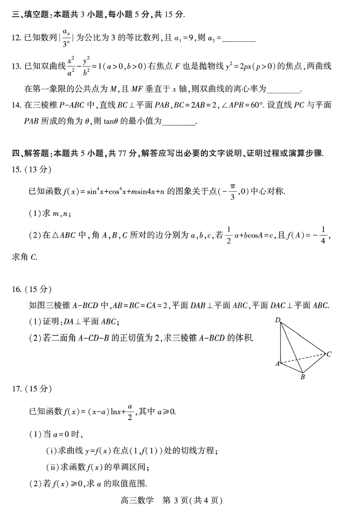 三、填空题(本题共3小题,每小题5分,共15分)