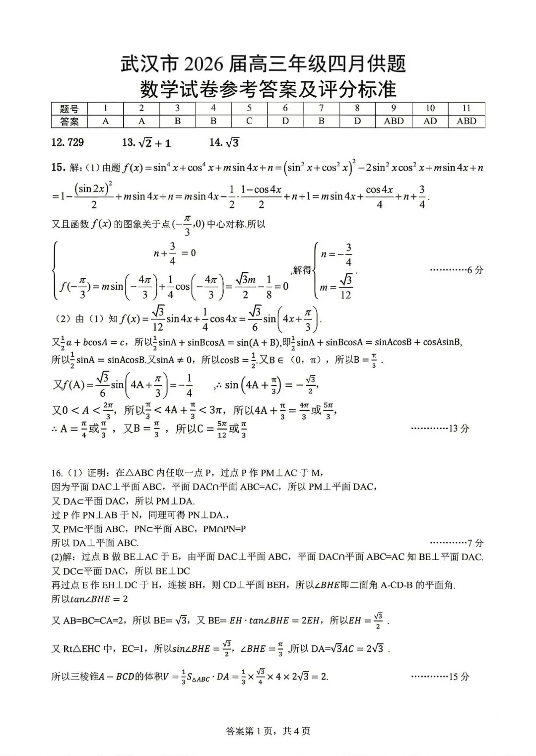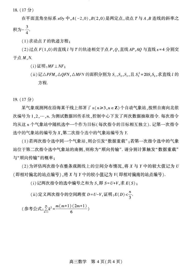 注意:解答题考查的为三角函数、立体几何、数列、概率统计(或线性回归分析)、圆锥曲线、函数与导数。