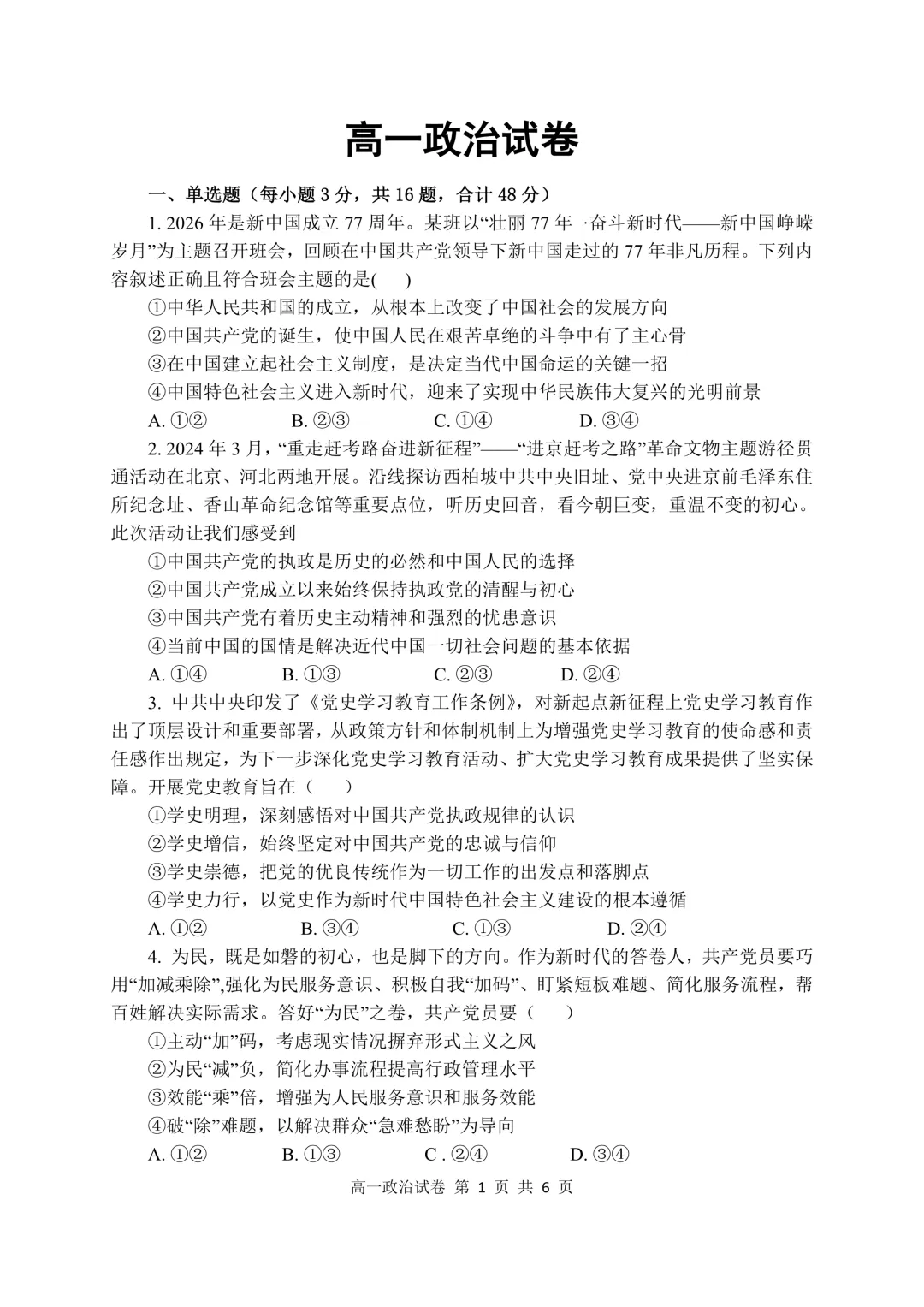 四、发送高一试卷