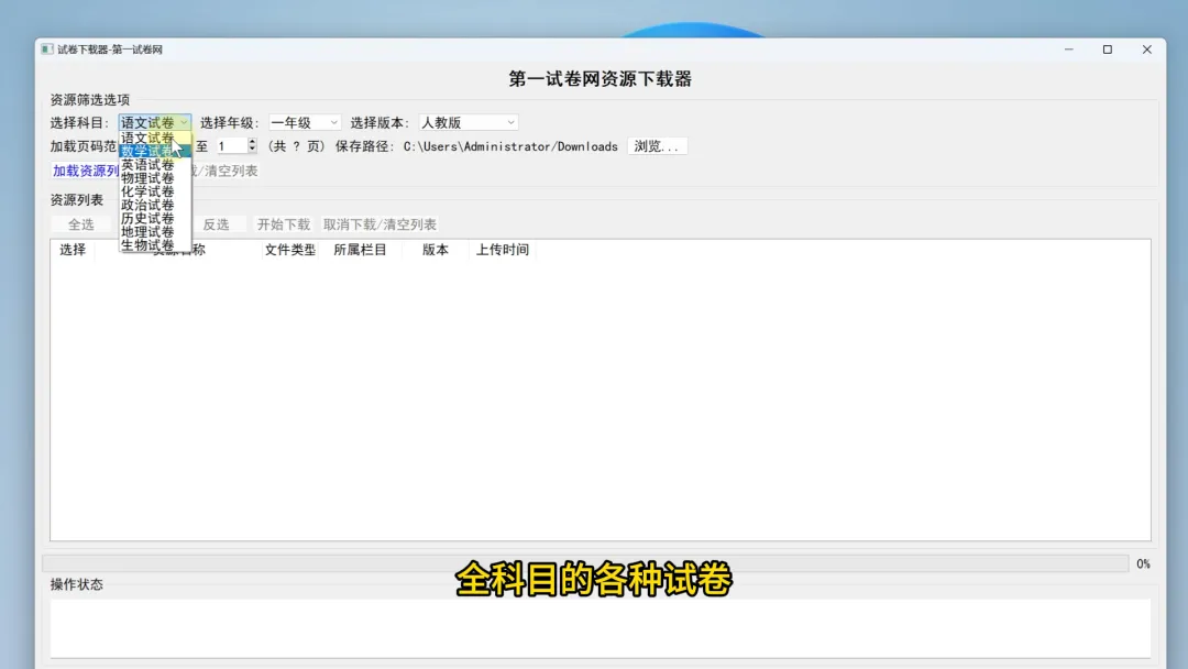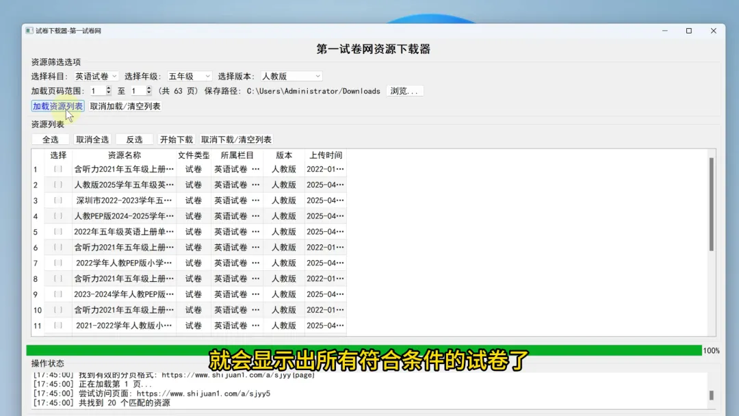 选中你需要的科目、年级版本后,点击加载资源列表按钮,就会显示出所有符合条件的试卷了