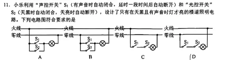 核心考点:串并联电路特点、声控/光控开关设计、安全用电原则。
