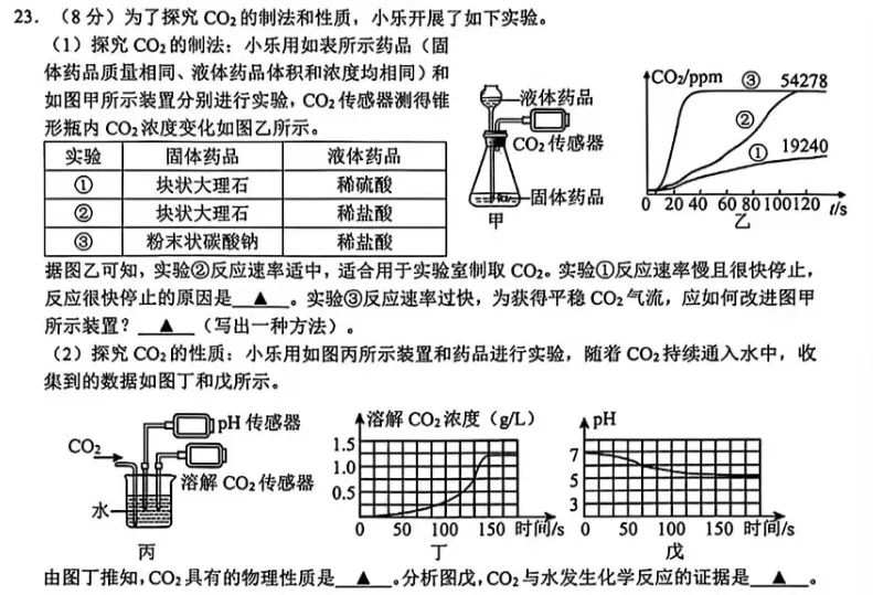 核心重点二:气体制取与性质探究二氧化碳、氧气的制取装置选择、药品选择、收集与检验,是基础重点。试卷进一步延伸到反应速率对比、性质验证实验设计,加入了控制变量、对比实验思路,和跨学科的实验思维相通。