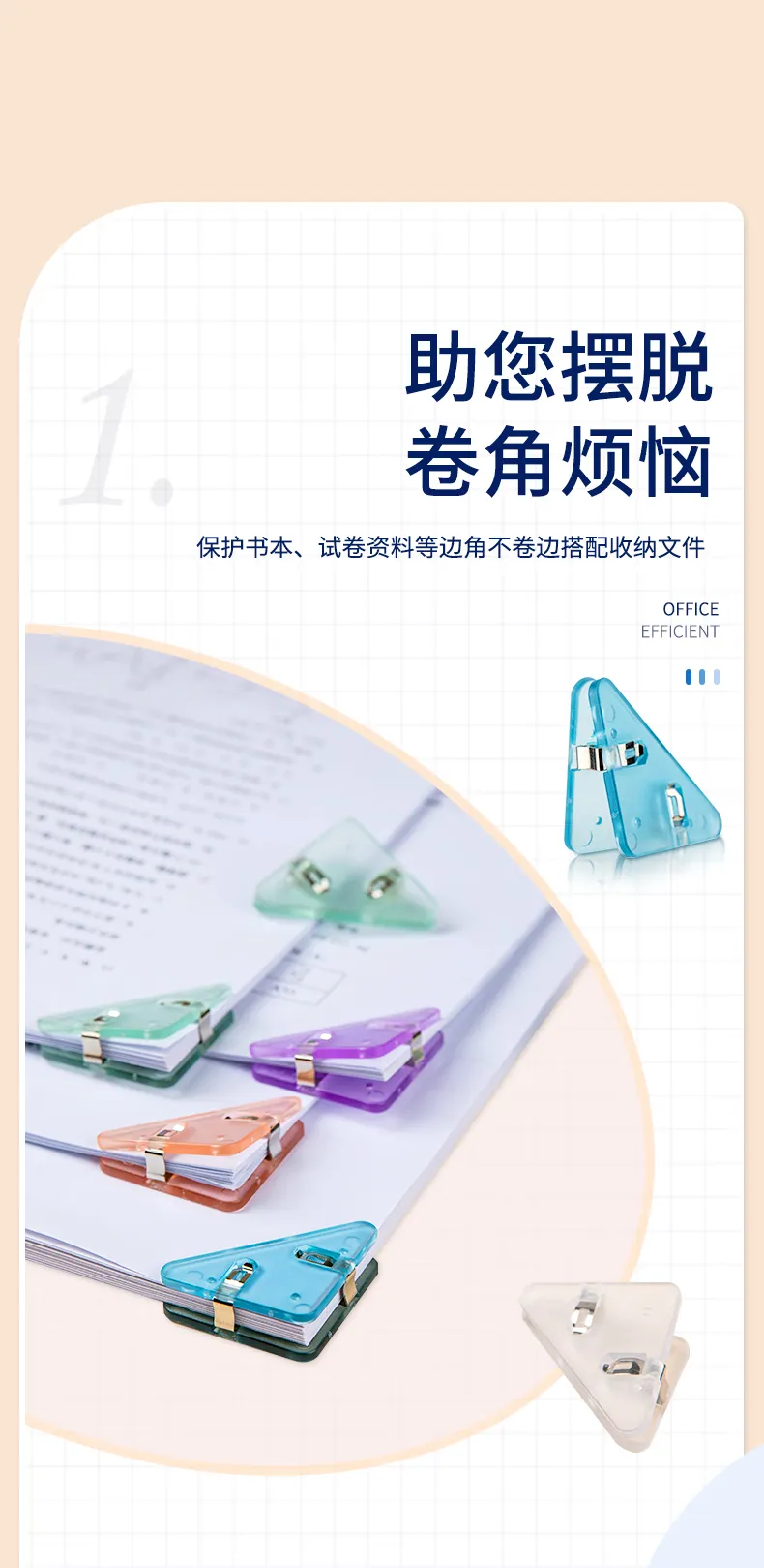 >齐心Comix 透明三角试卷夹 5个装 学生书桌整理神器 纸张防皱夹