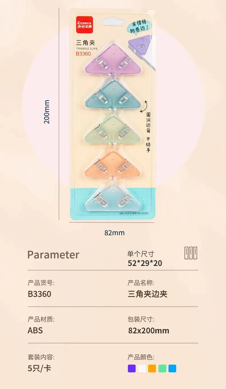 齐心Comix 透明三角试卷夹 5个装 学生书桌整理神器 纸张防皱夹