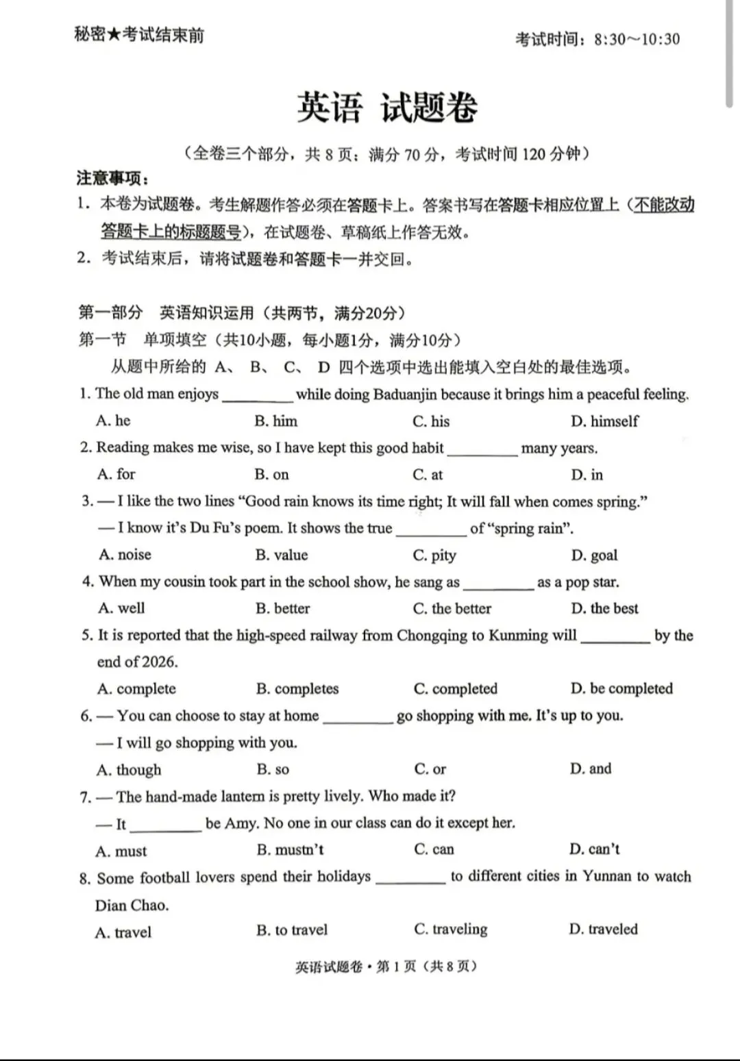 甘肃临夏州中考英语试卷(2024)(原卷版+解析版)(无水印PDF打印版)(合集)