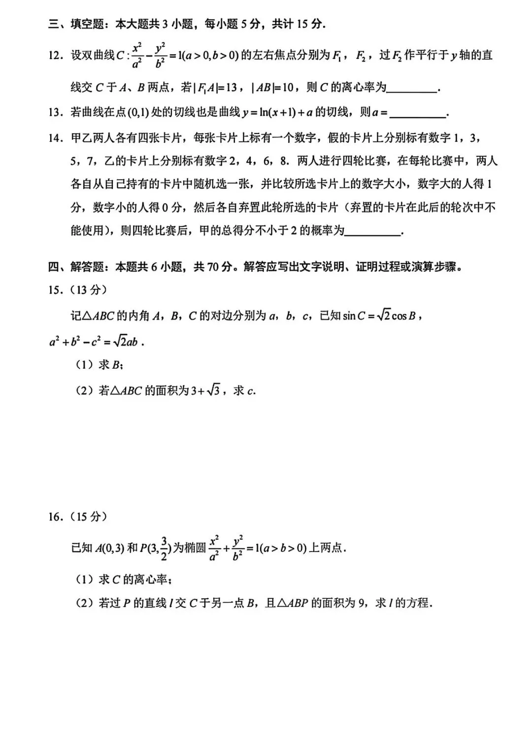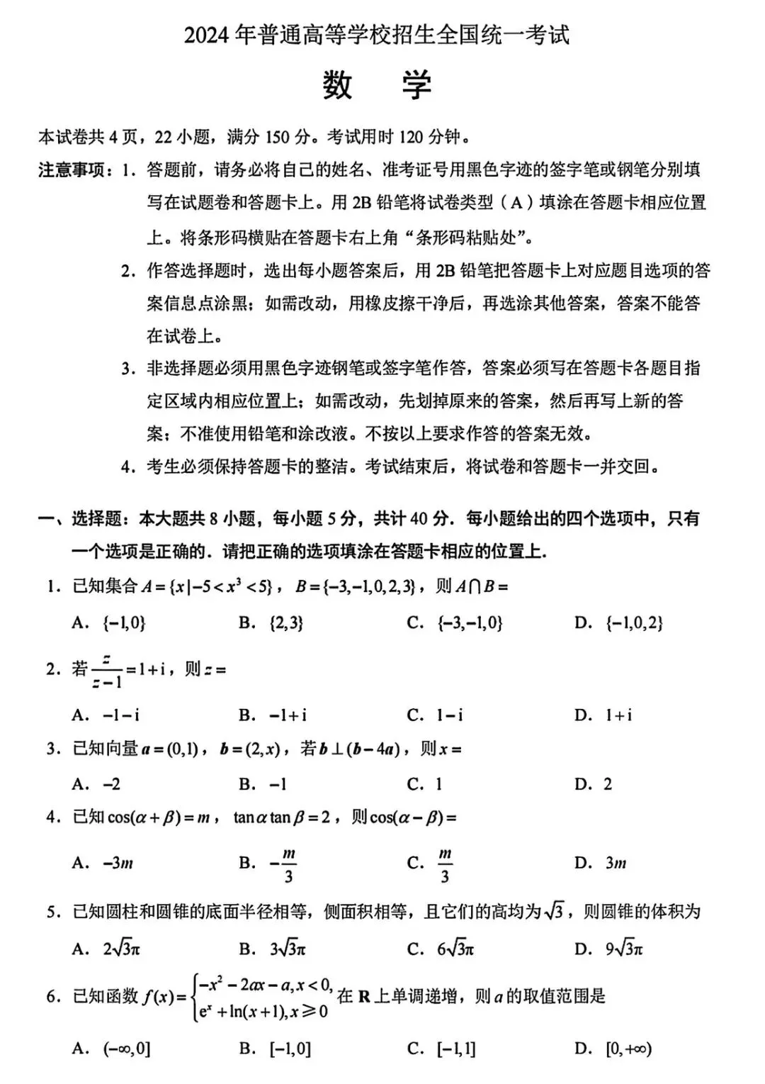 2024年全国新高考Ⅰ卷数学试卷(2024.06)