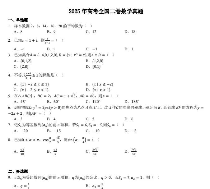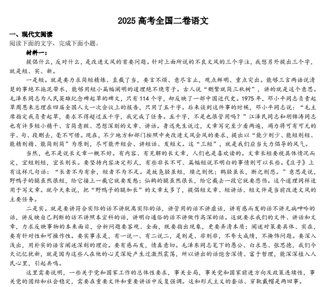 2025 年陕西高考真题及答案 - 全国二卷(语数英)
