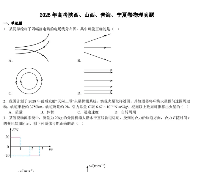 【高考试卷】2025年陕西省高考试卷真题【9科】含答案解析汇总(含历年真题,pdf可保存下载)