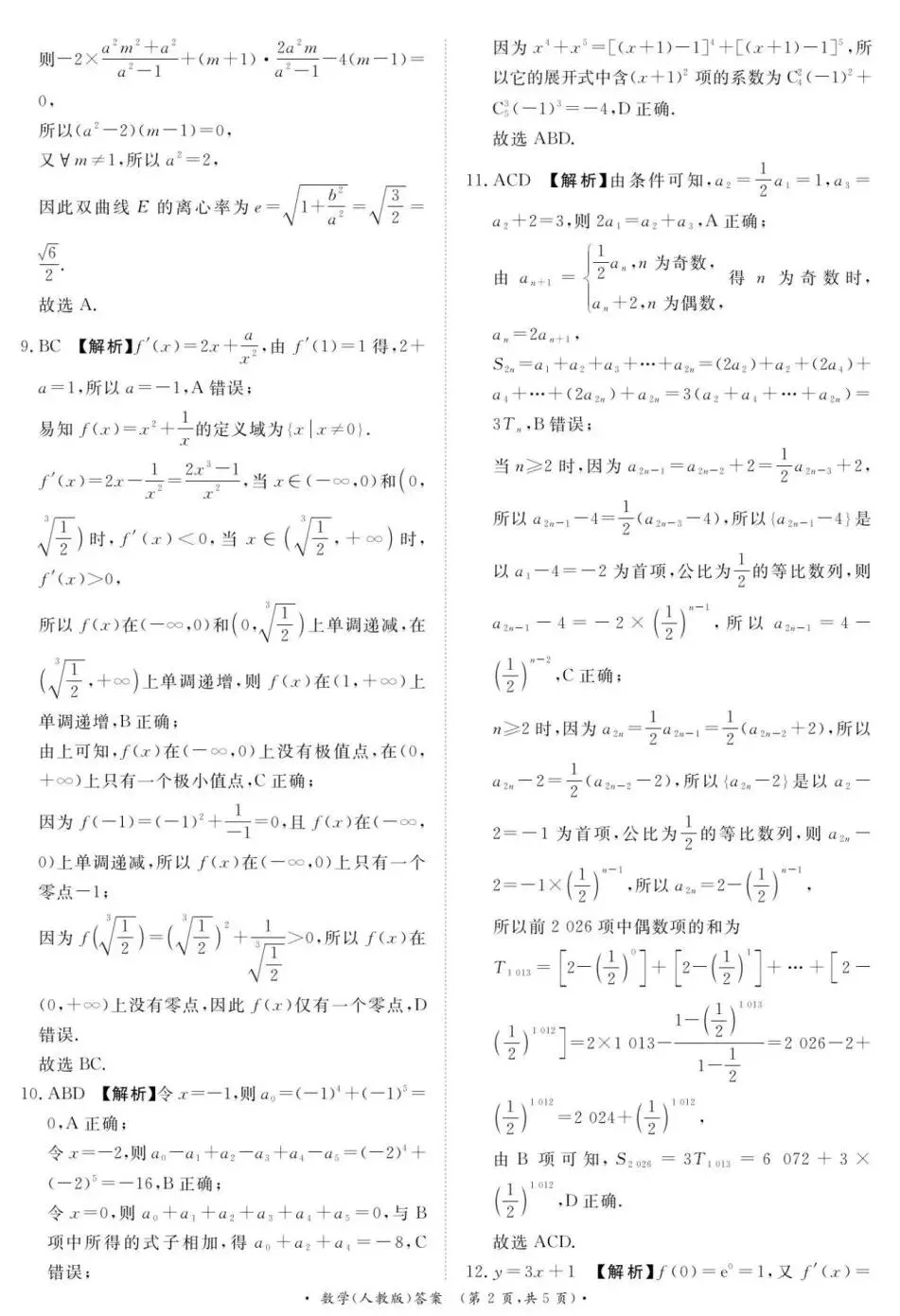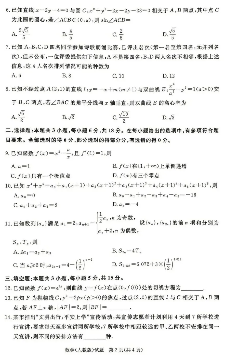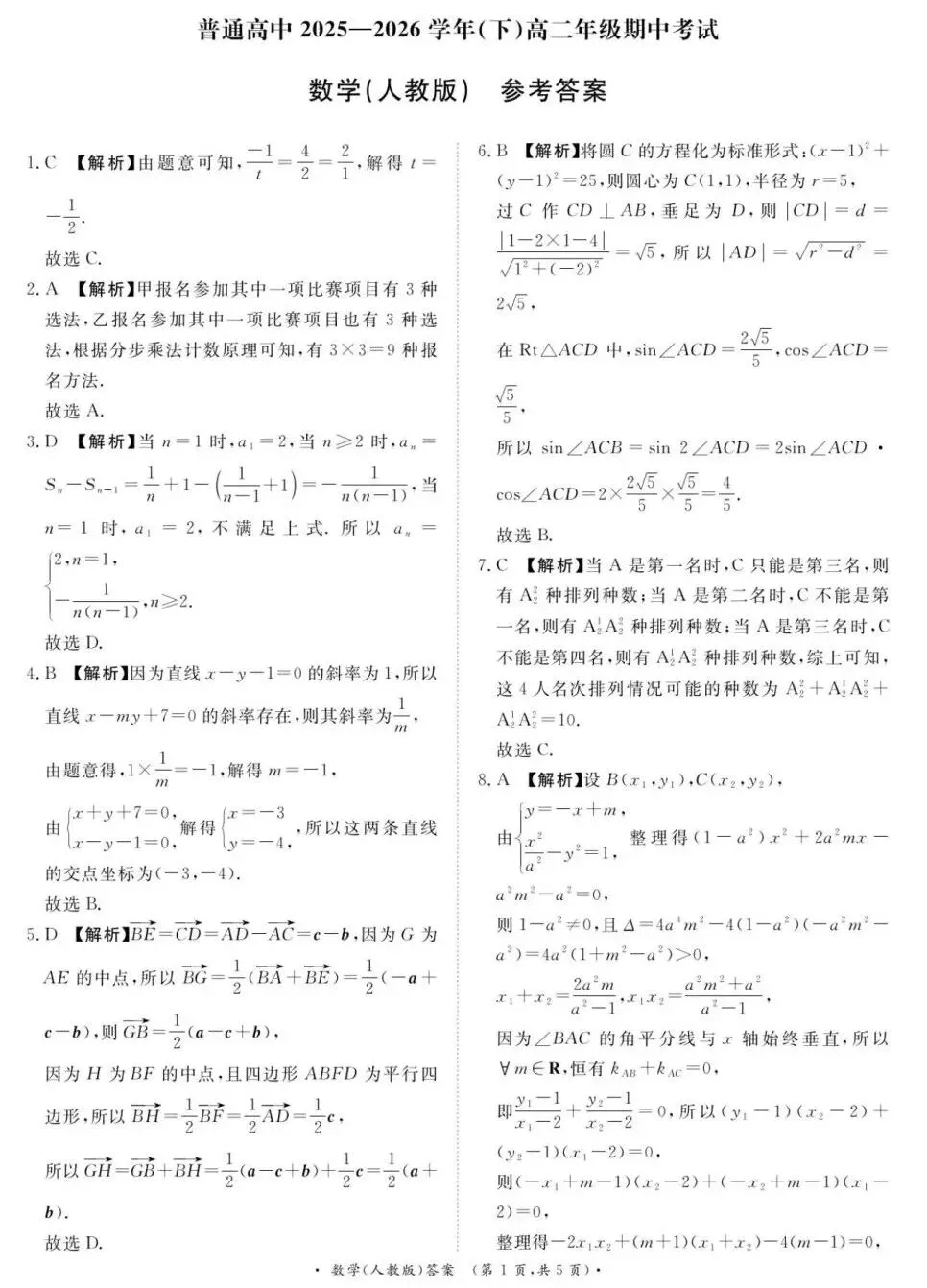 25-26青桐鸣高二下期中考试数学试卷及答案