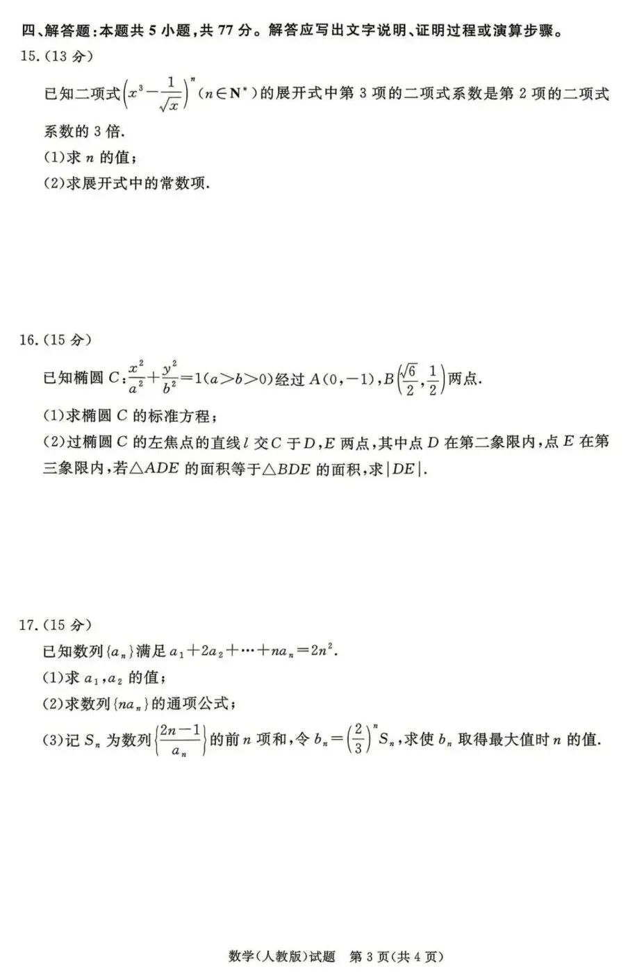 >25-26青桐鸣高二下期中考试数学试卷及答案