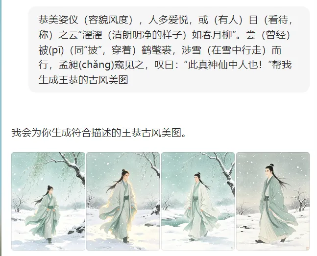 王恭曾身披鹤氅裘,在雪中行走。孟昶暗中看见,不禁感叹:“这真是神仙中的人啊!”此事亦成为后世形容超凡脱俗风姿的著名典故。