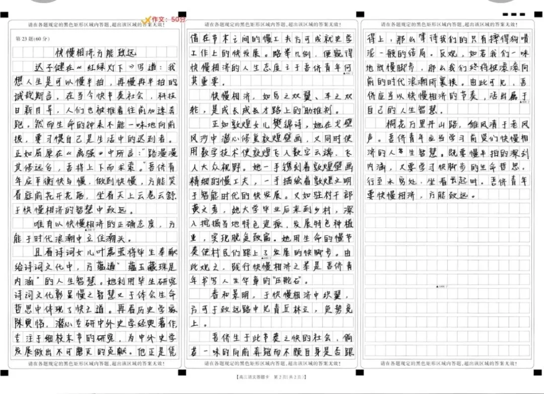 4.我们身处一个追求高效的时代:信息瞬息可达,技术迭代加速,AI一键生成,生活日益便捷,“更快、更高、更强”成为许多人的追求。与此同时,也有人清醒地指出:真正的学问需要深潜,匠心技艺需要打磨,精神成长需要积淀,有价值的创造往往无法“速成”。