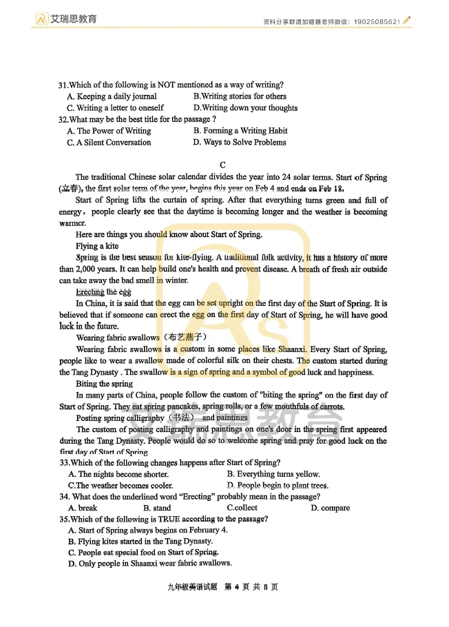 【初三二诊】成都各区初三二诊试卷及答案,更新中……