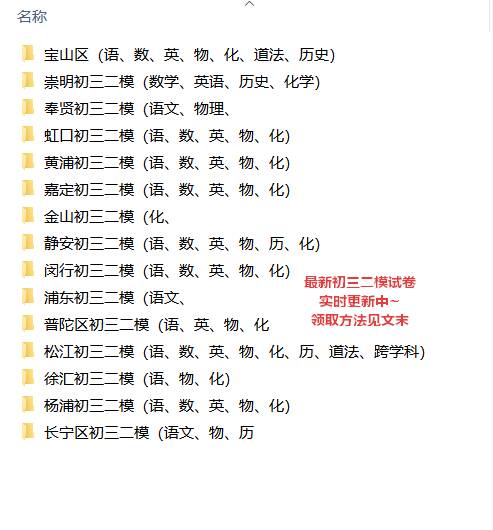 最新2026初三二模卷领取方式: