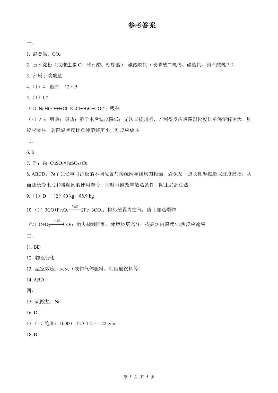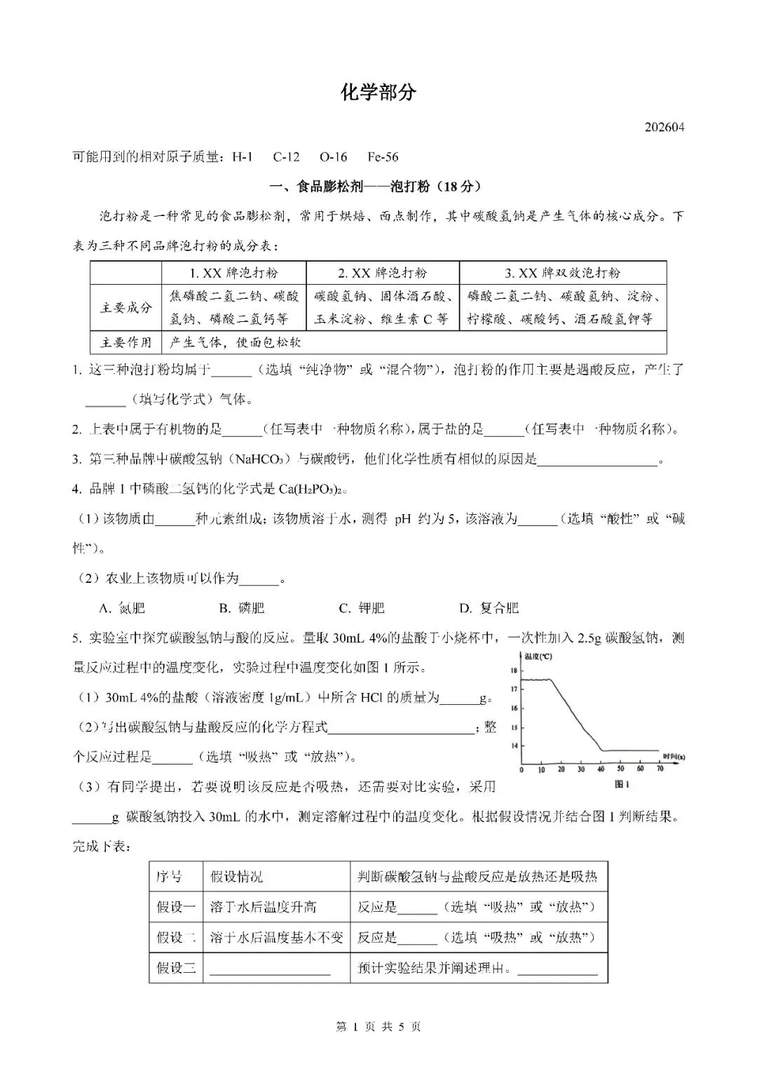 2026届上海市普陀区初三二模化学试卷(含答案)