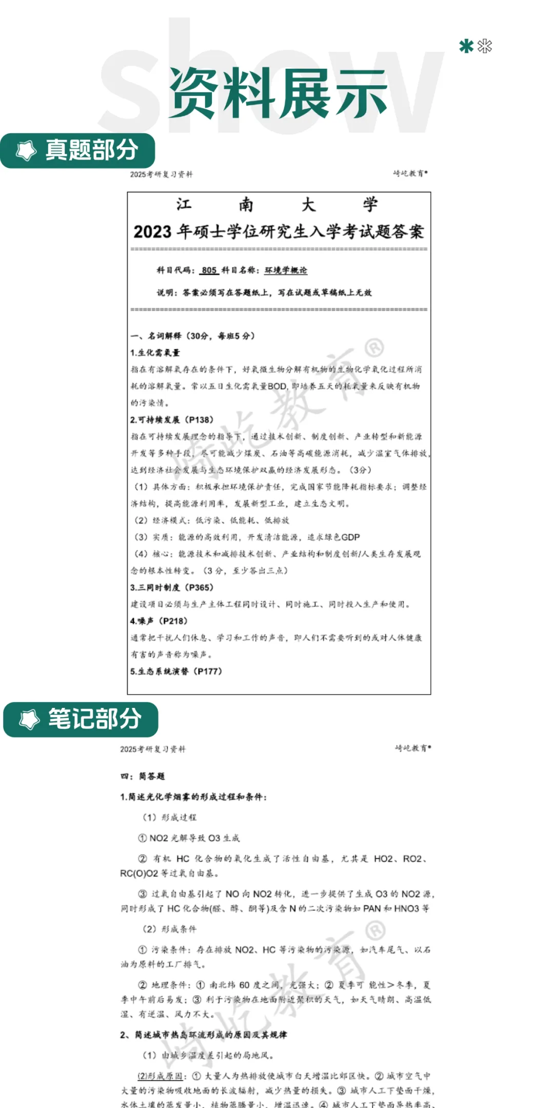讲义内容为根据江南大学805往年考察情况精心整理,后期可以直接背诵使用!非常方便!