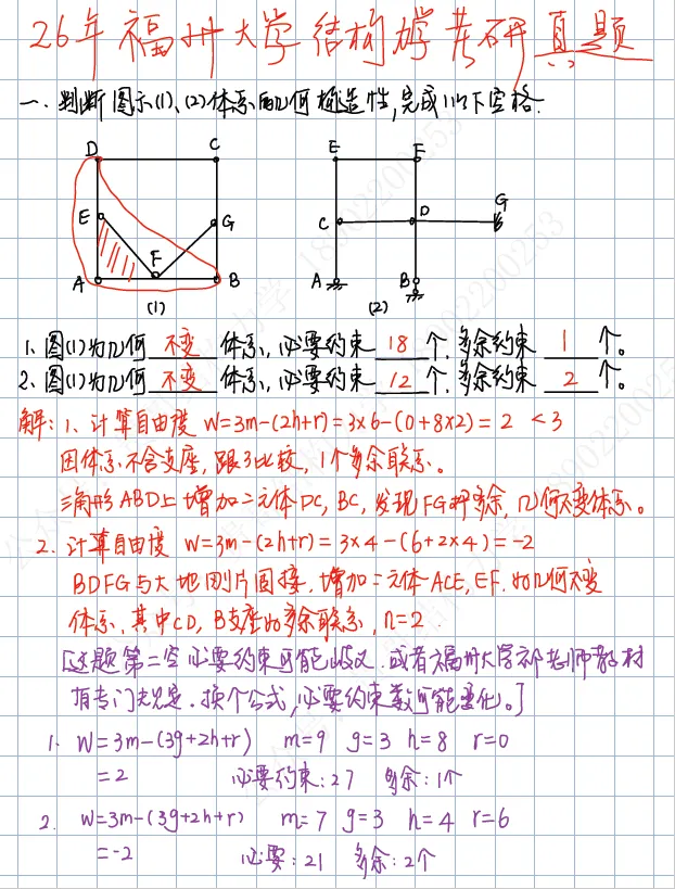 福州大学2026年结构力学考研真题及答案【残血版】