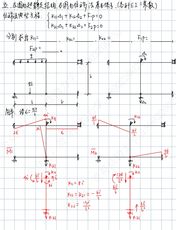 第五题:组位移法图求解超静定结构,求系数和自由项;