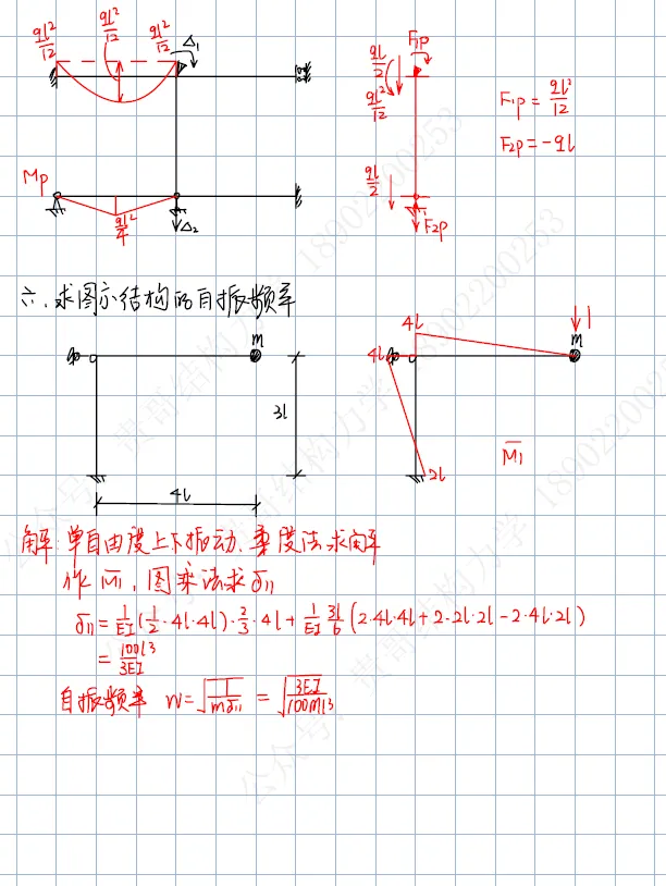 第六题:求超静定结构单自由度体系的自振频率;