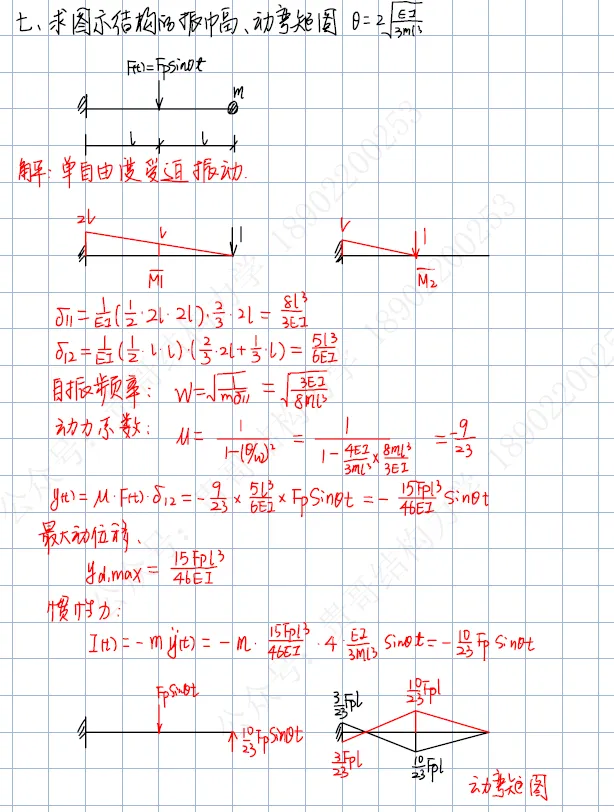 单自由度体系的受迫振动的振幅和动弯矩图,荷载不是作用在质点上;