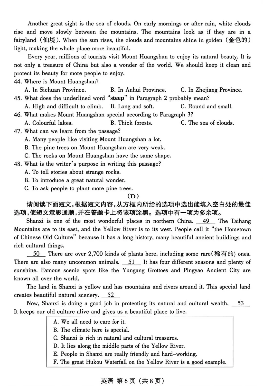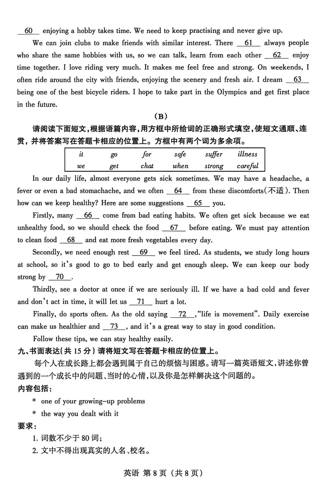 26上期中卷 | 附中集团初二联考英语试卷