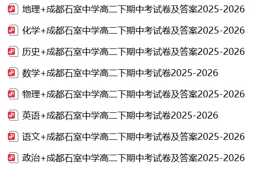 成都专属:实时更新成都市中小学名校开学考、月考、期中、期末、历年小升初、中考、高考模拟、真题试卷及答案,助力成都学子金榜题名!所有试卷均可手机端、电脑端电子版下载。