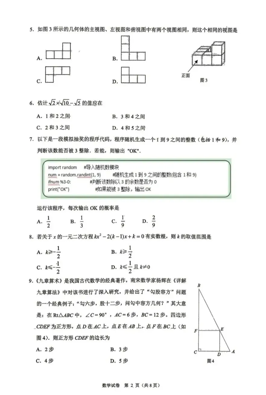 2026年张家口初三数学一模数学试卷及答案